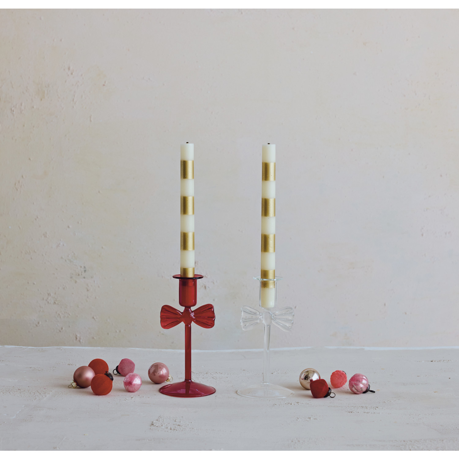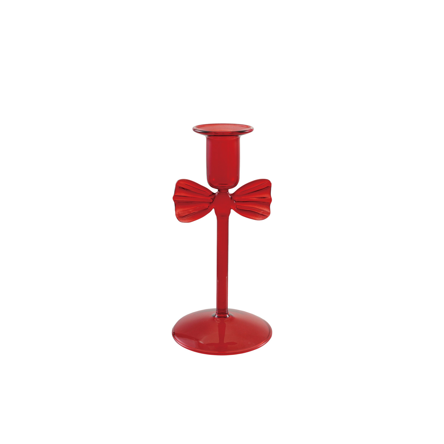 Glass Taper Holder with Bow, Red