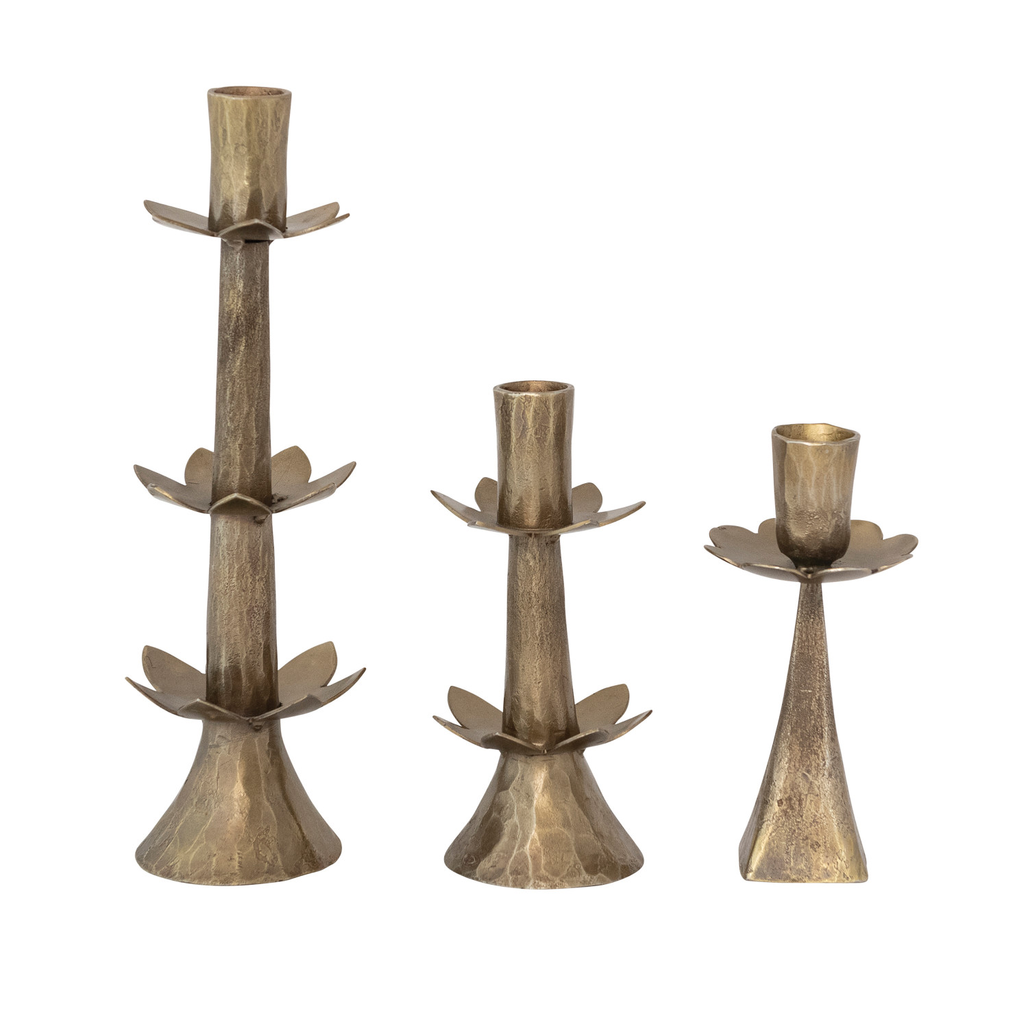 Hand-Forged Metal Flower Shaped Taper Holder, Antique Brass Finish