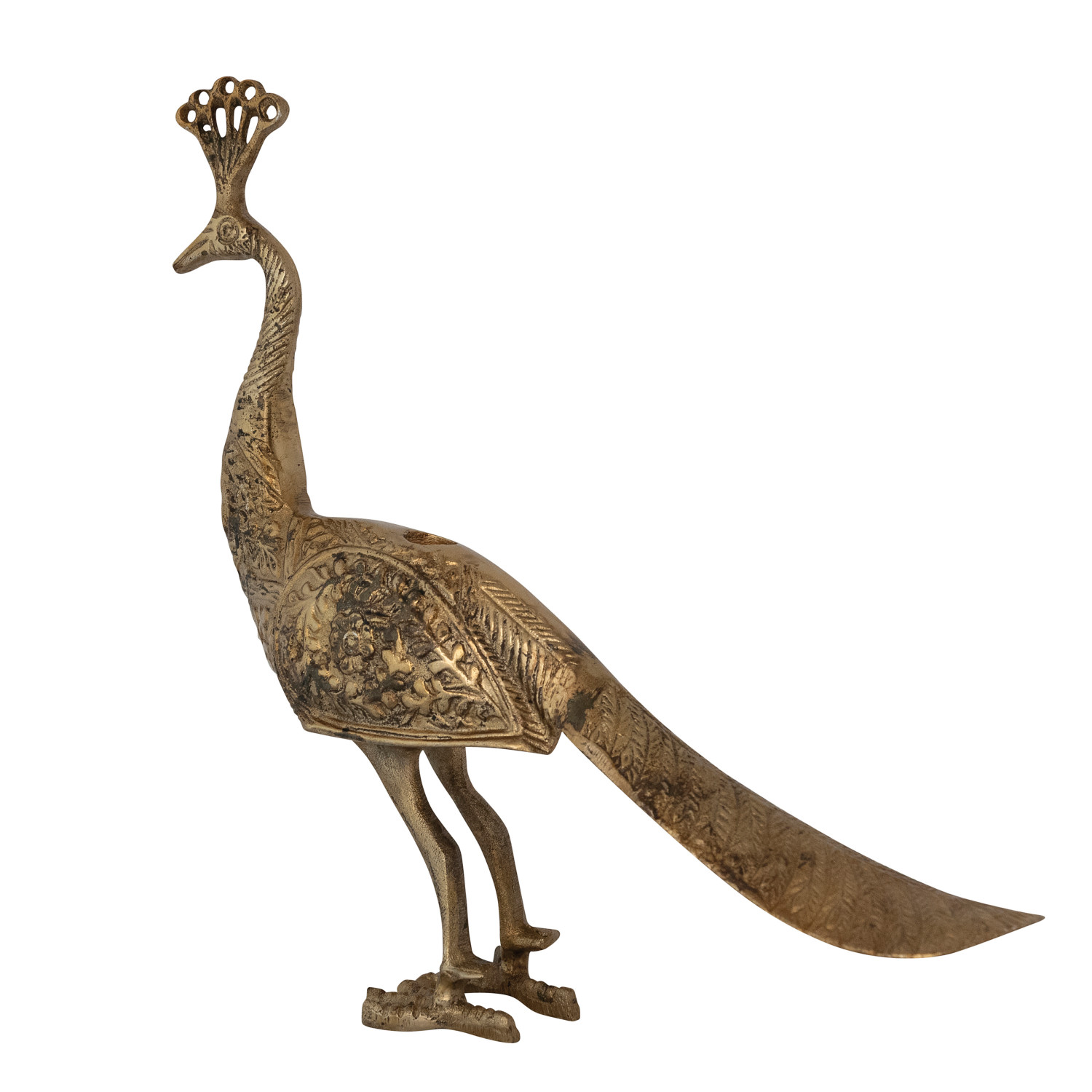 Cast Aluminum Peacock Shaped Taper Holder, Antique Brass Finish