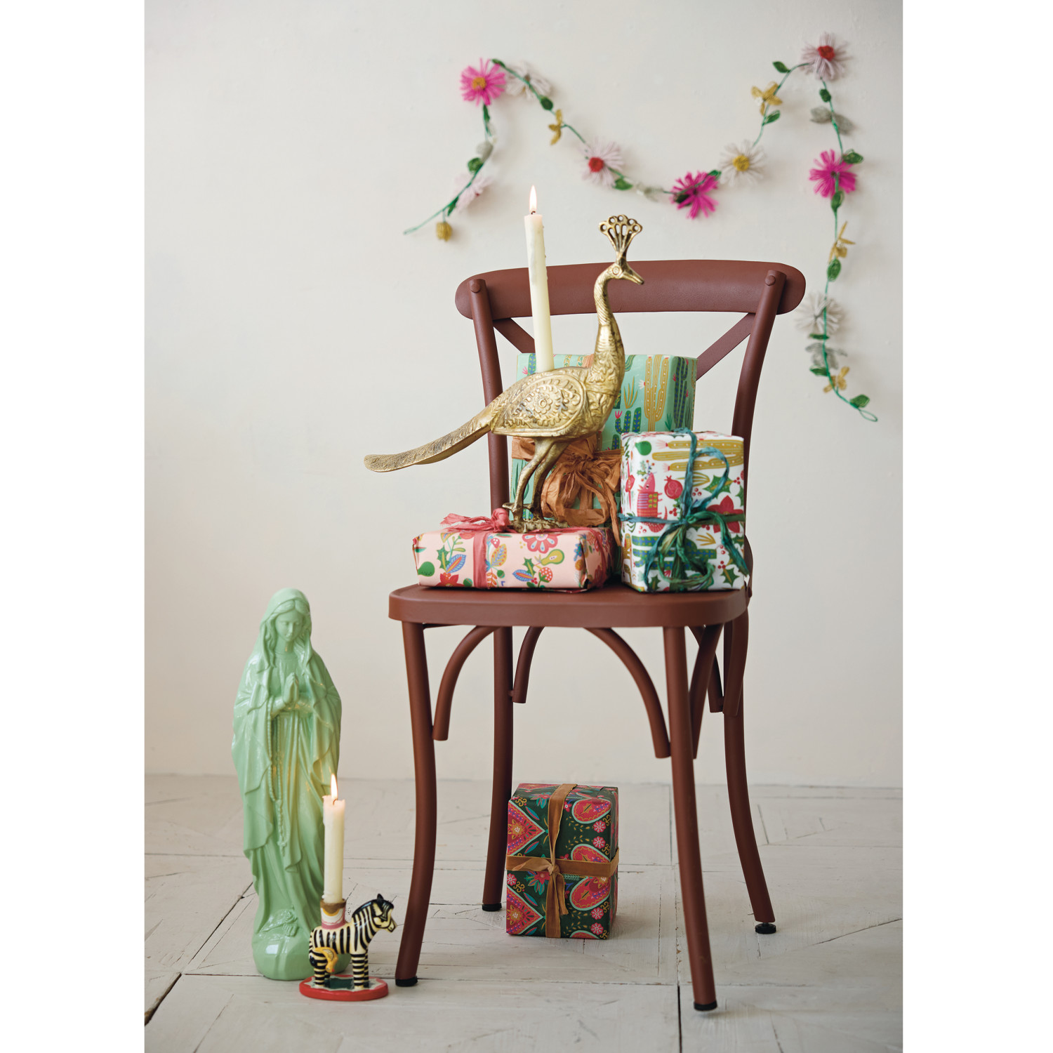Catalog Name: 16-1/2"L x 3-1/2"W x 15"H Cast Aluminum Peacock Shaped Taper Holder, Antique Brass Finish
