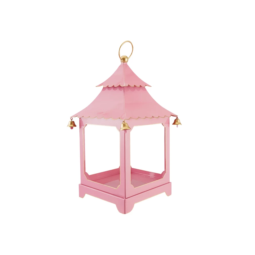 Metal Scalloped Lantern with Bells & Handle, Pink & Gold Finish