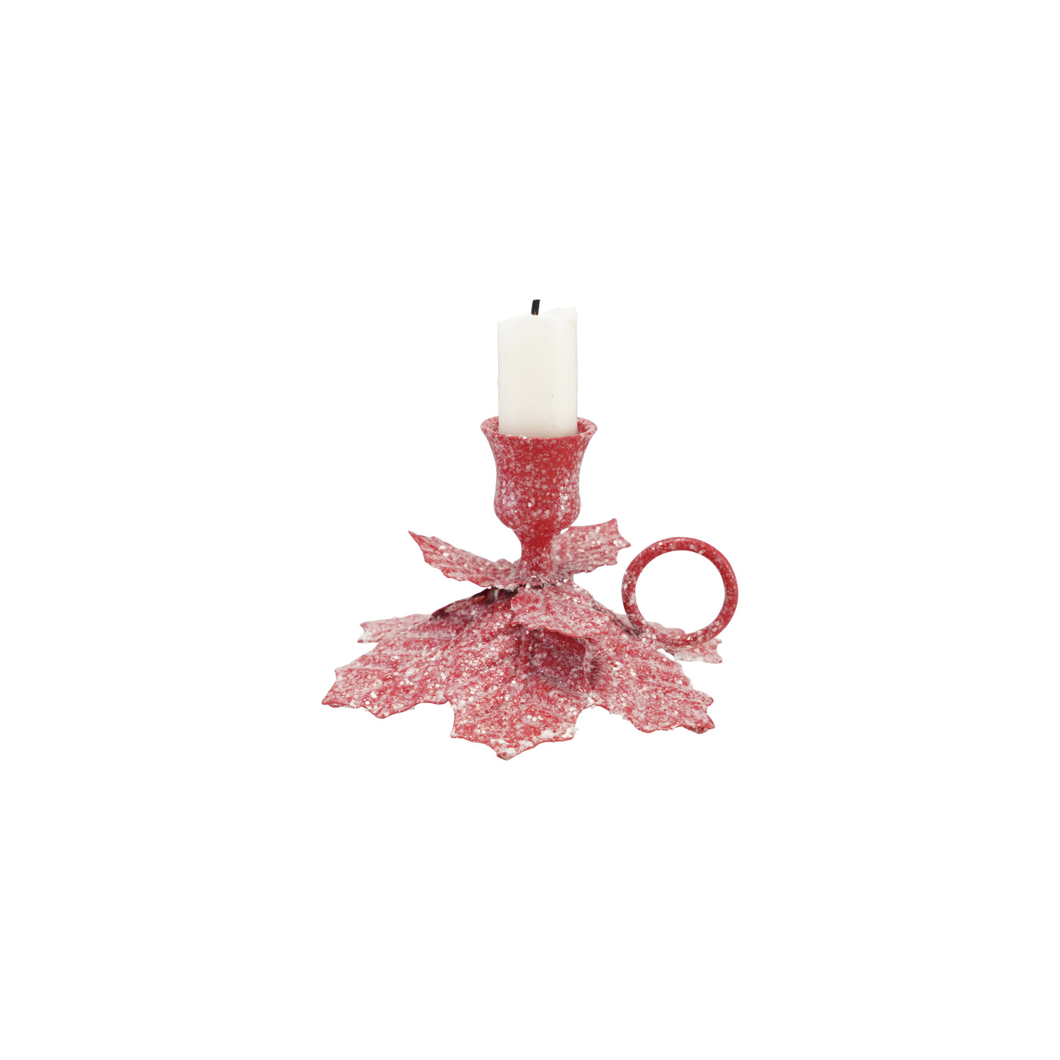 Catalog Name: 5-1/4"L x 4-3/4"W x 3"H Metal Poinsettia Shaped Taper Holder w/ Handle & Sugar, Red