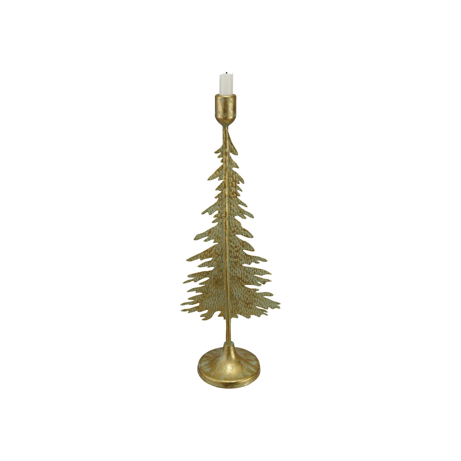 Catalog Name: 7"L x 4-1/2"W x 19-3/4"H Metal Tree Shaped Taper Holder, Verdigris Finish