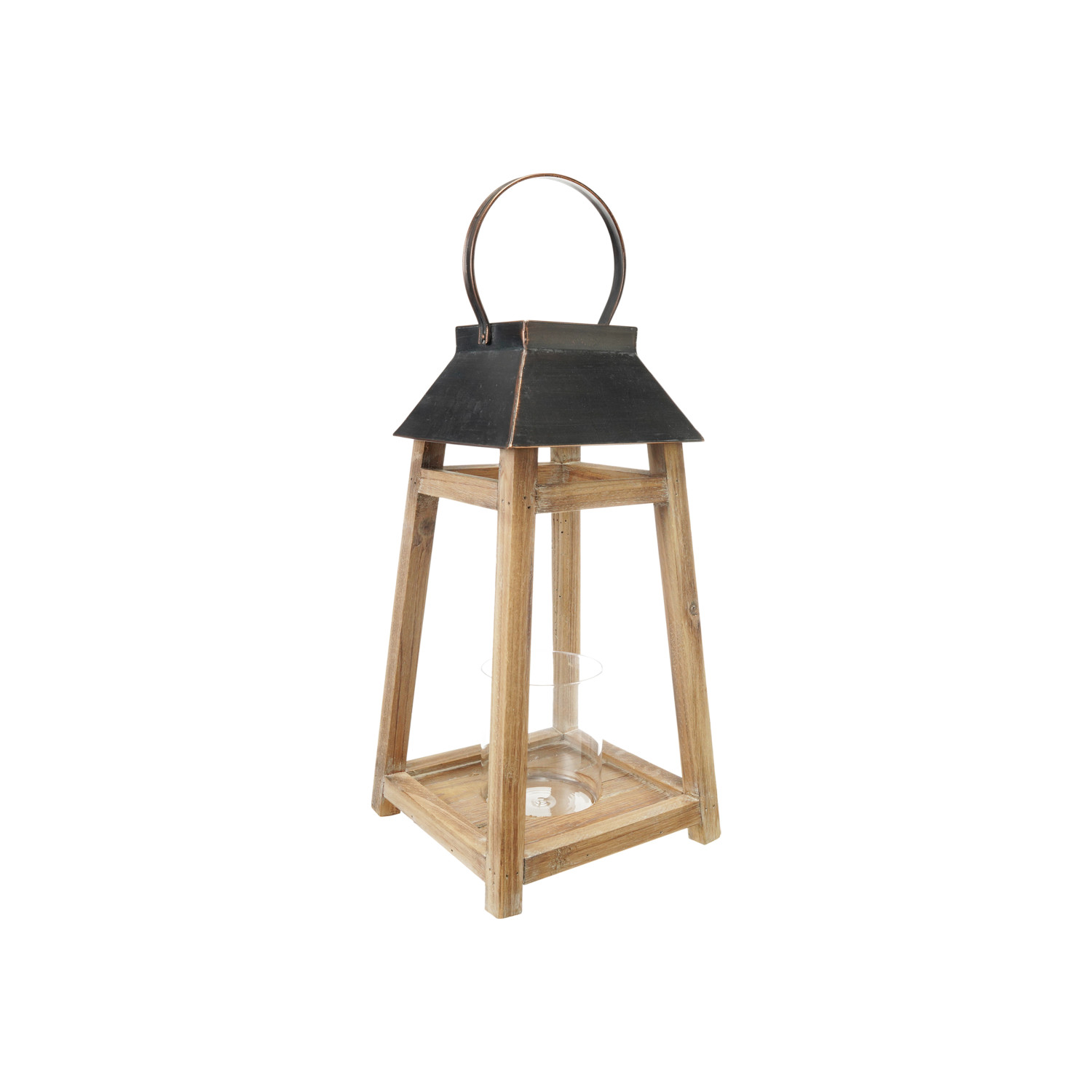 Wood & Metal Lantern with Glass Hurricane, Natural & Black