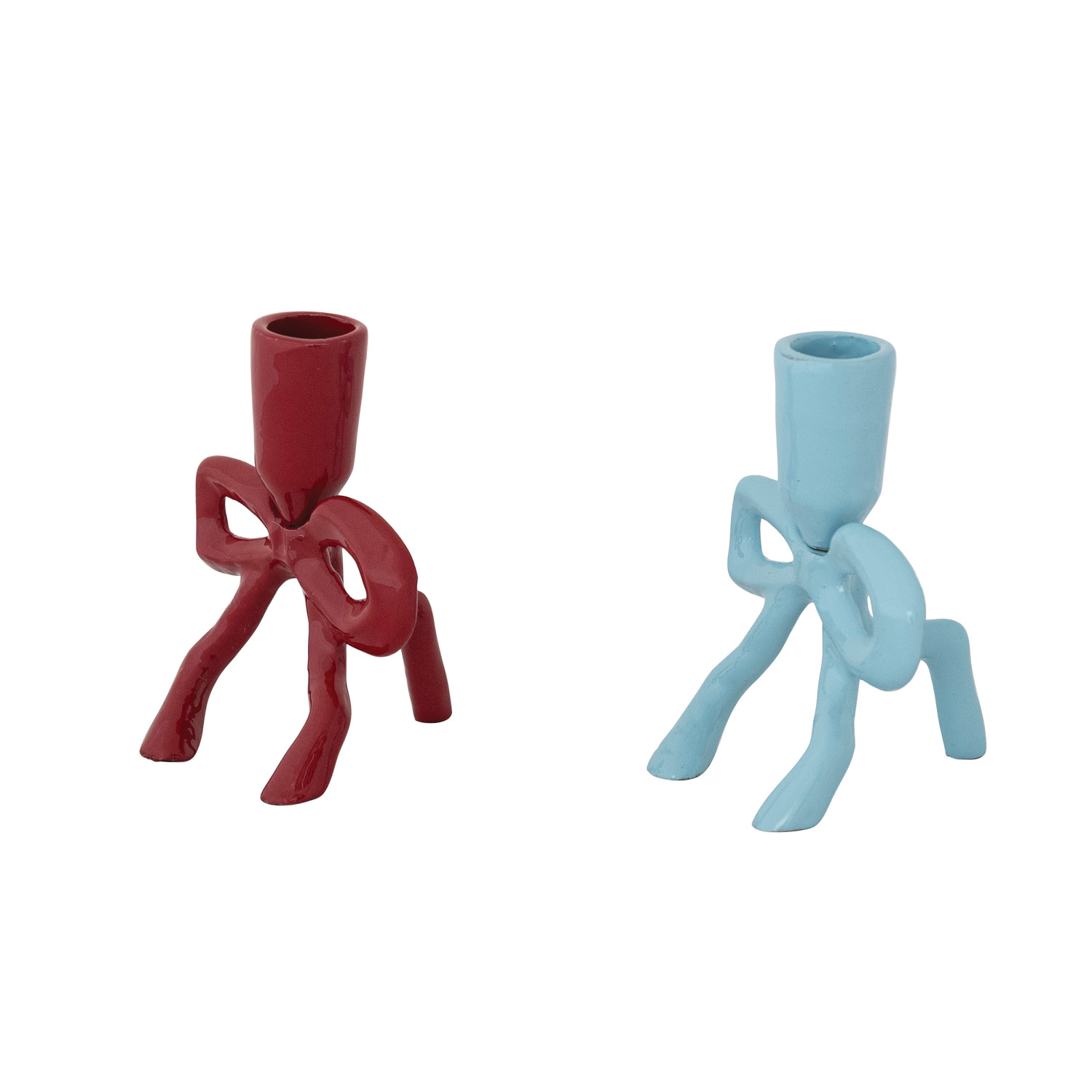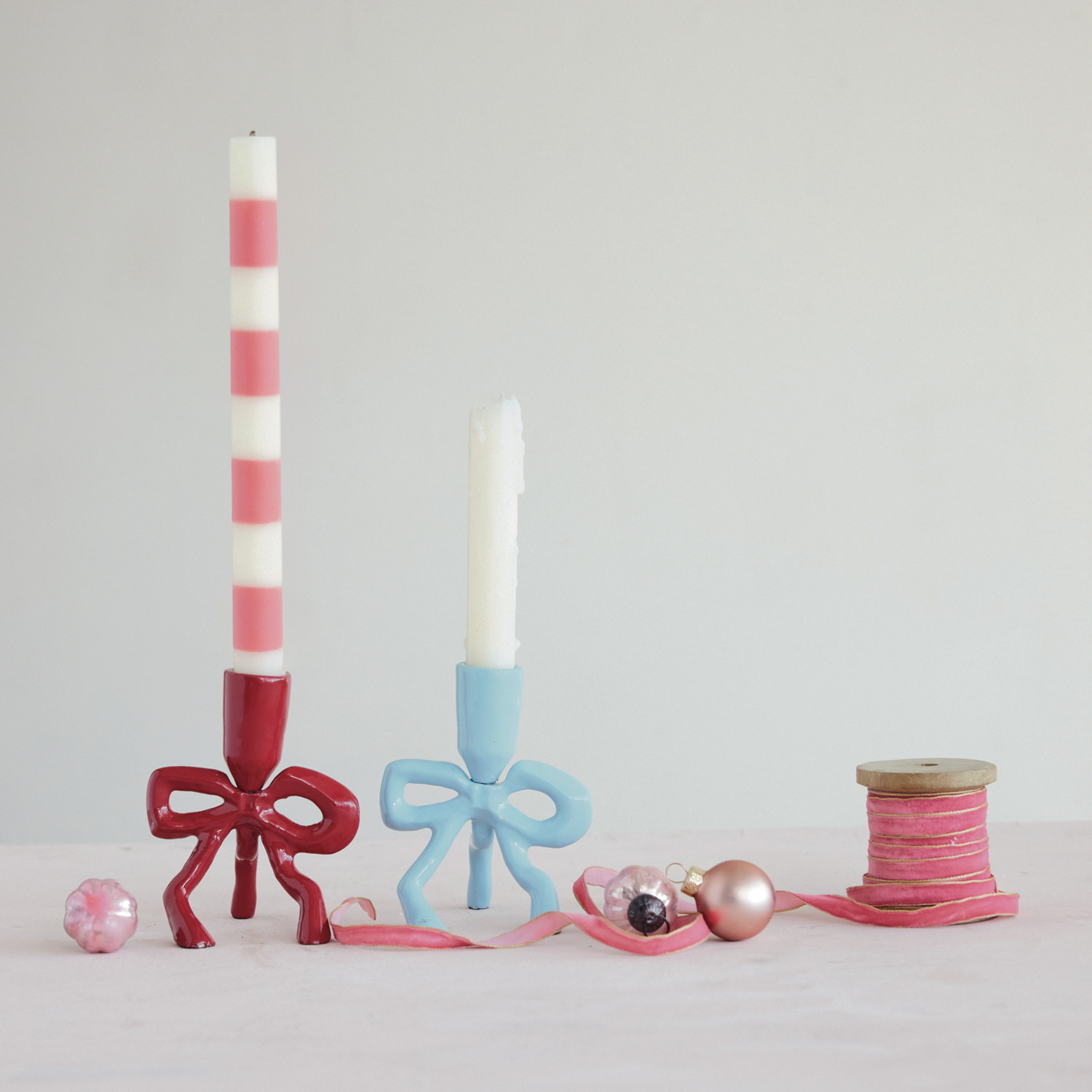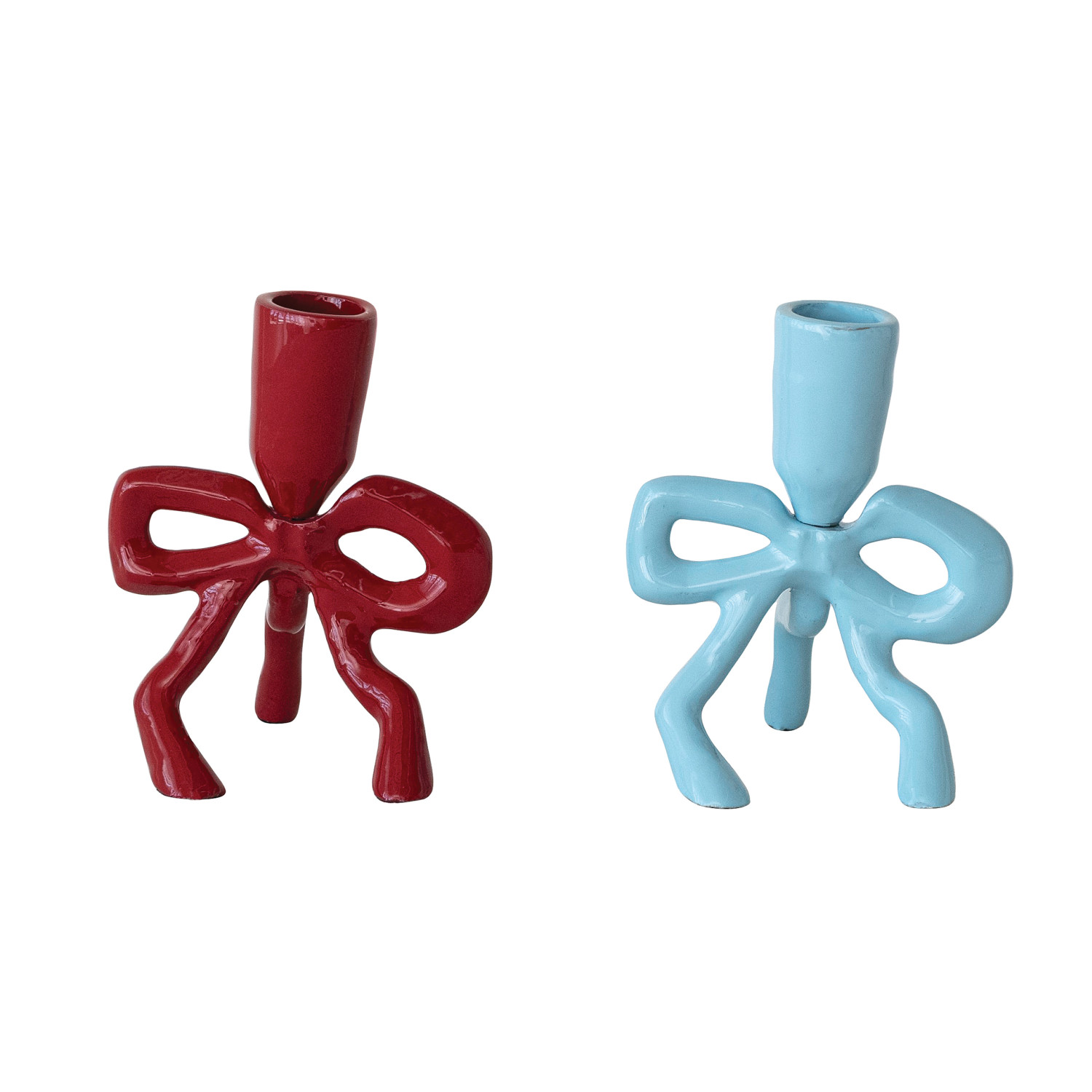 Enameled Cast Aluminum Bow Shaped Taper Holder, 2 Colors