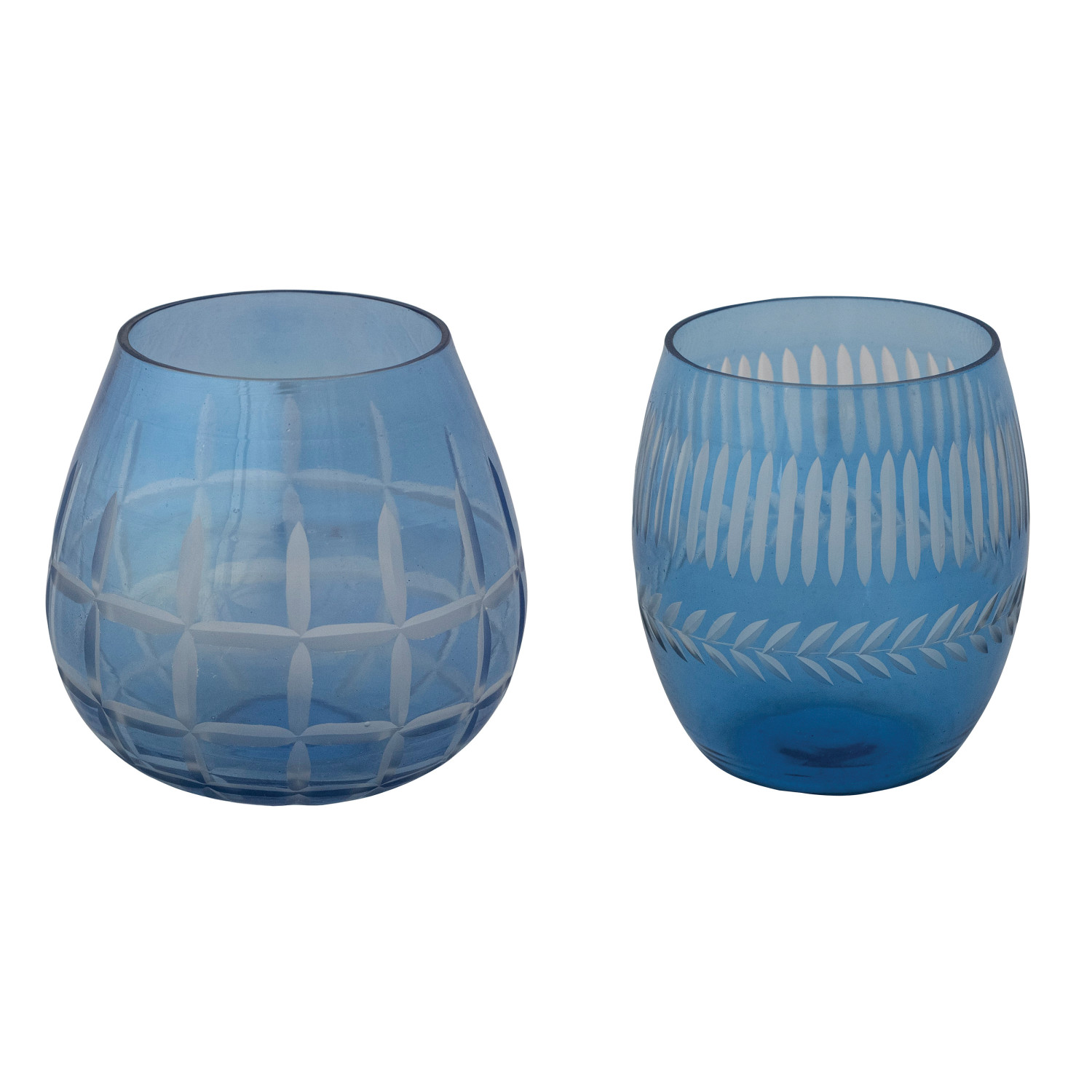 Etched Glass Tealight/Votive Holder, Blue, 2 Styles