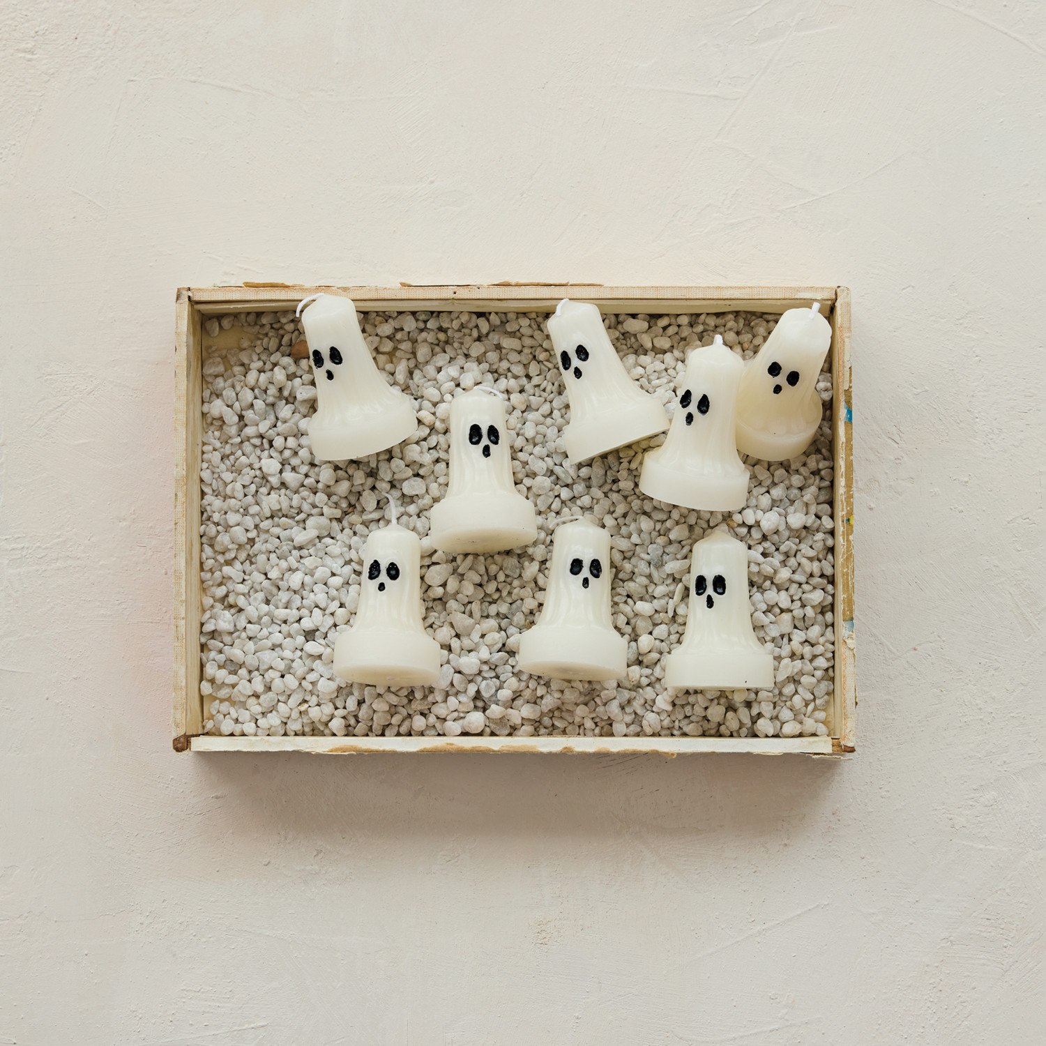 Unscented Ghost Shaped Tealights in Box, White & Black, Set of 9