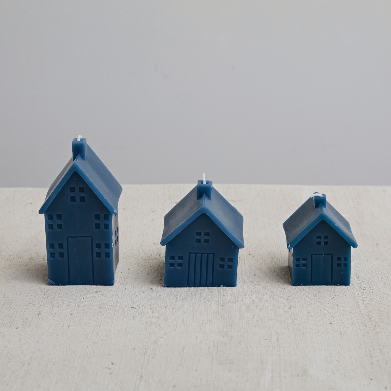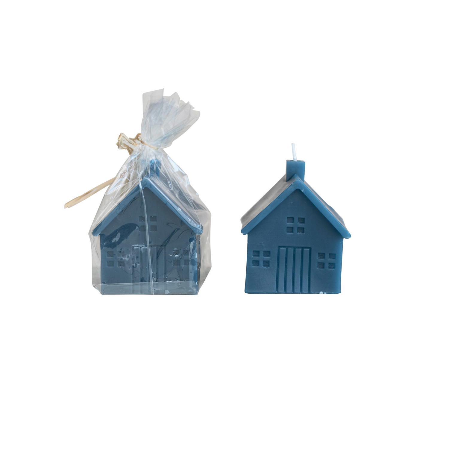 3" Square x 3-1/2"H Unscented House Shaped Candle, Blue (Approximate Burn Time 32 Hours)