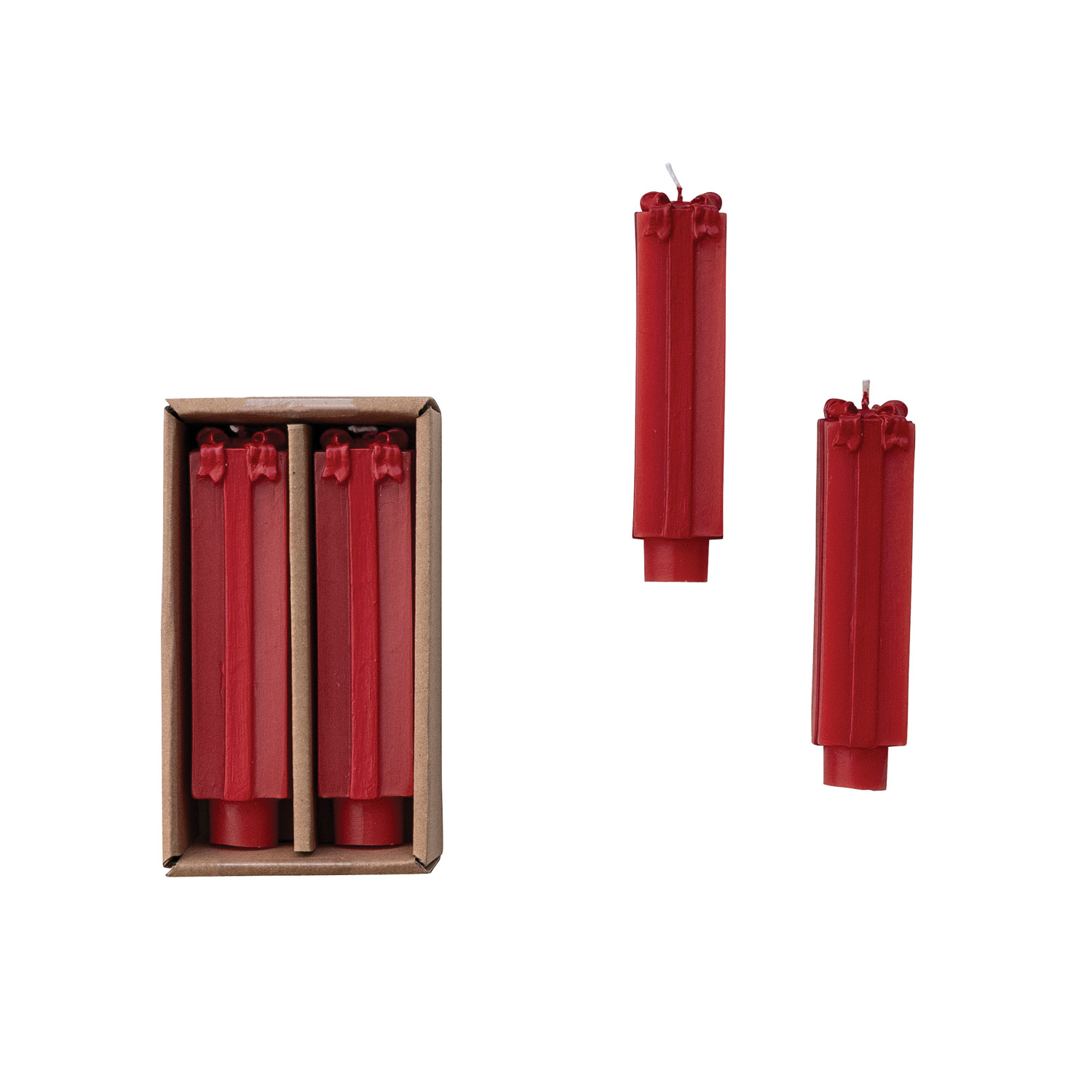 Unscented Package Shaped Taper Candles in Box, Red, Set of 2 (Est. Burn Time 6 Hours)