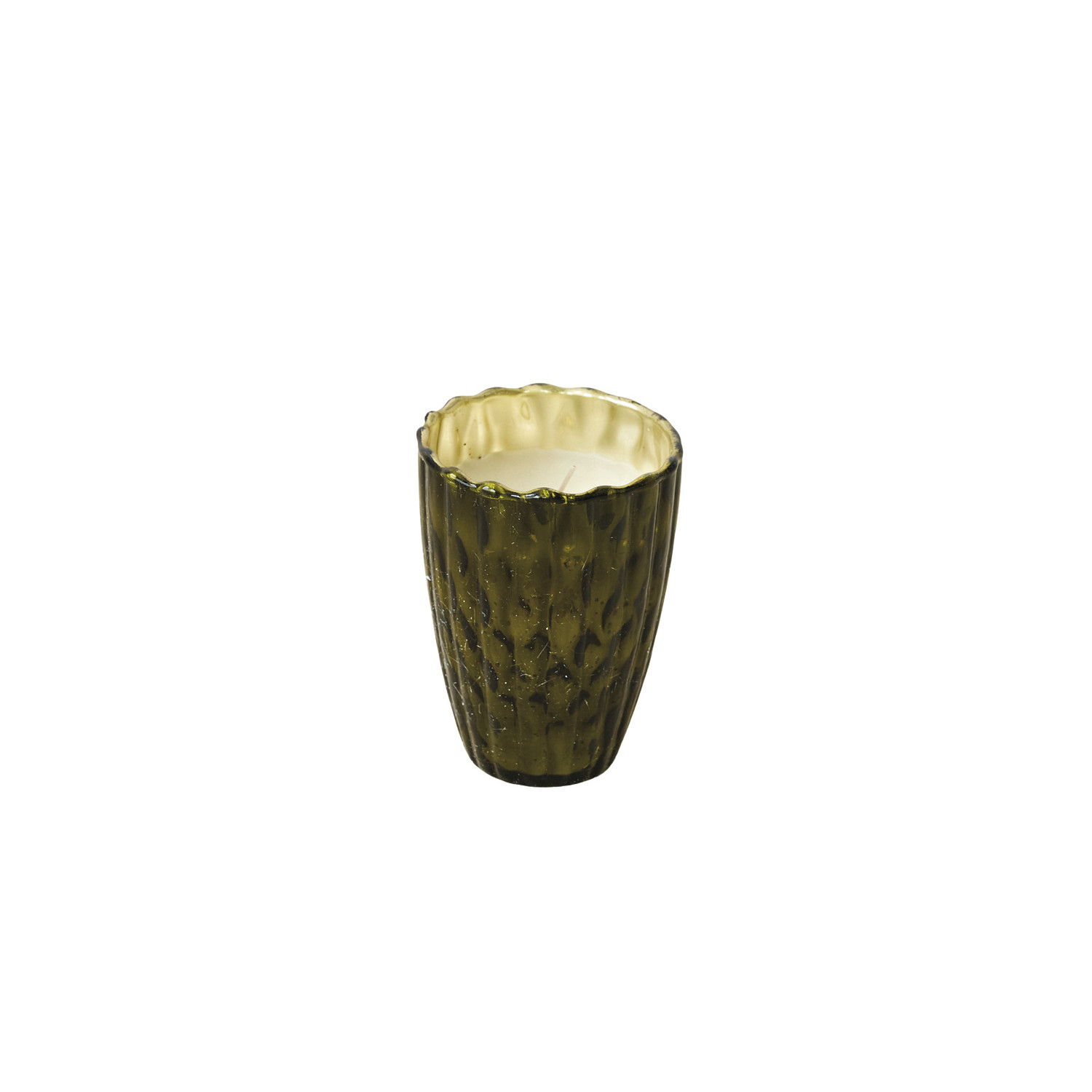 Catalog Name: 3-1/4" Round x 4-1/2"H 8.6 oz. Embossed Mercury Glass Walk In The Woods Scented Votive Candle, Green
