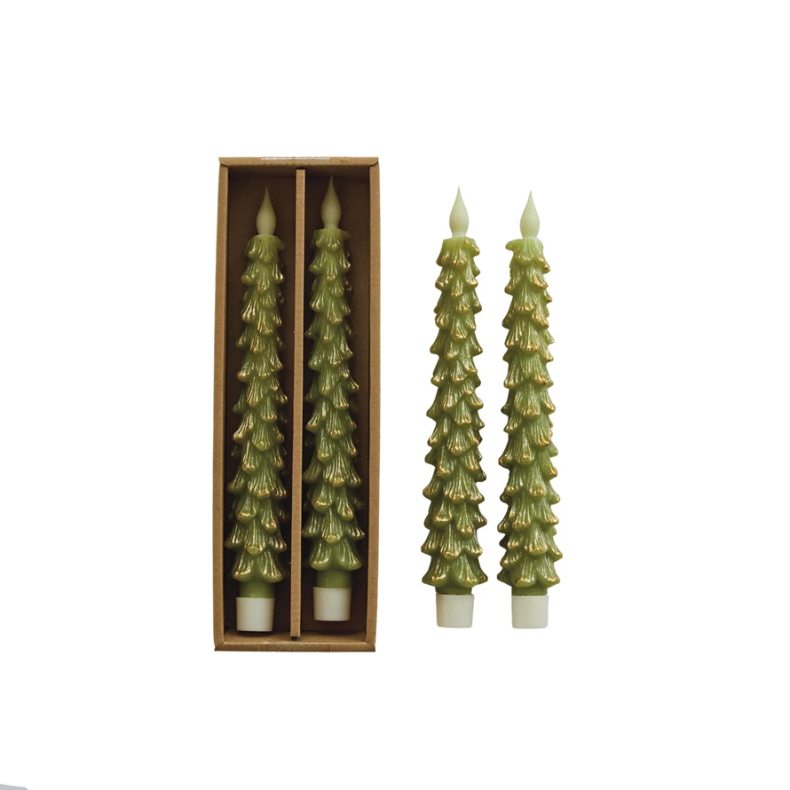 Flameless LED Tree Shaped Taper Candles with 6 Hour Timer & Gold Tips in Box, Set of 2