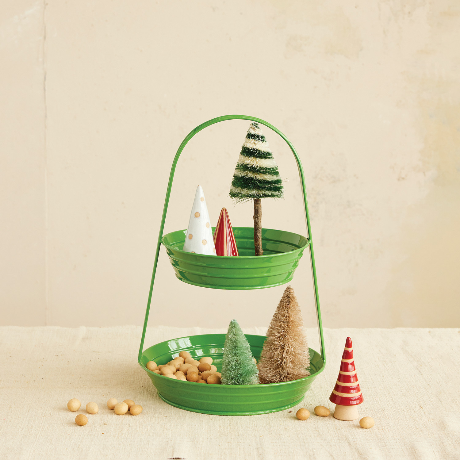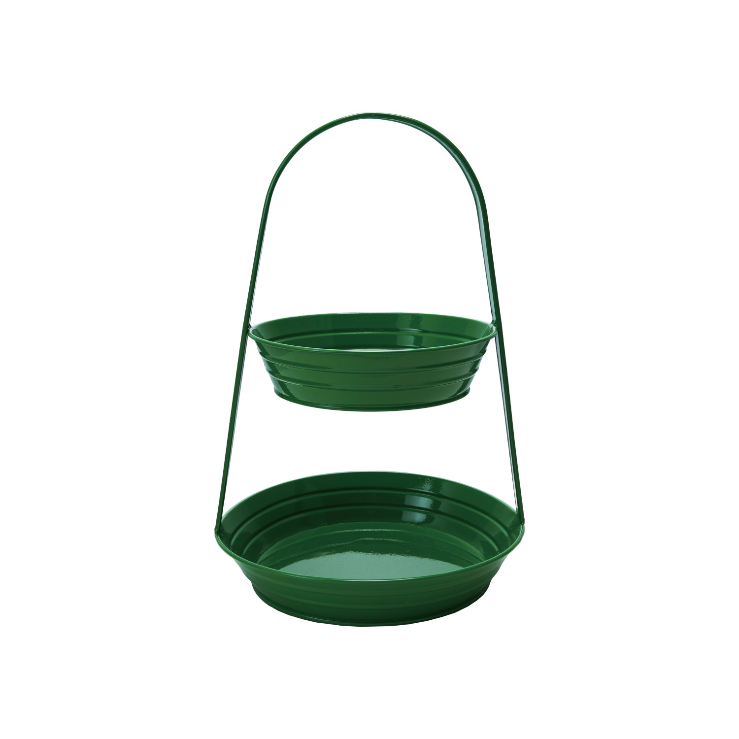 Catalog Name: 10" Round x 14-3/4"H Decorative Metal Ribbed 2-Tier Tray, Green