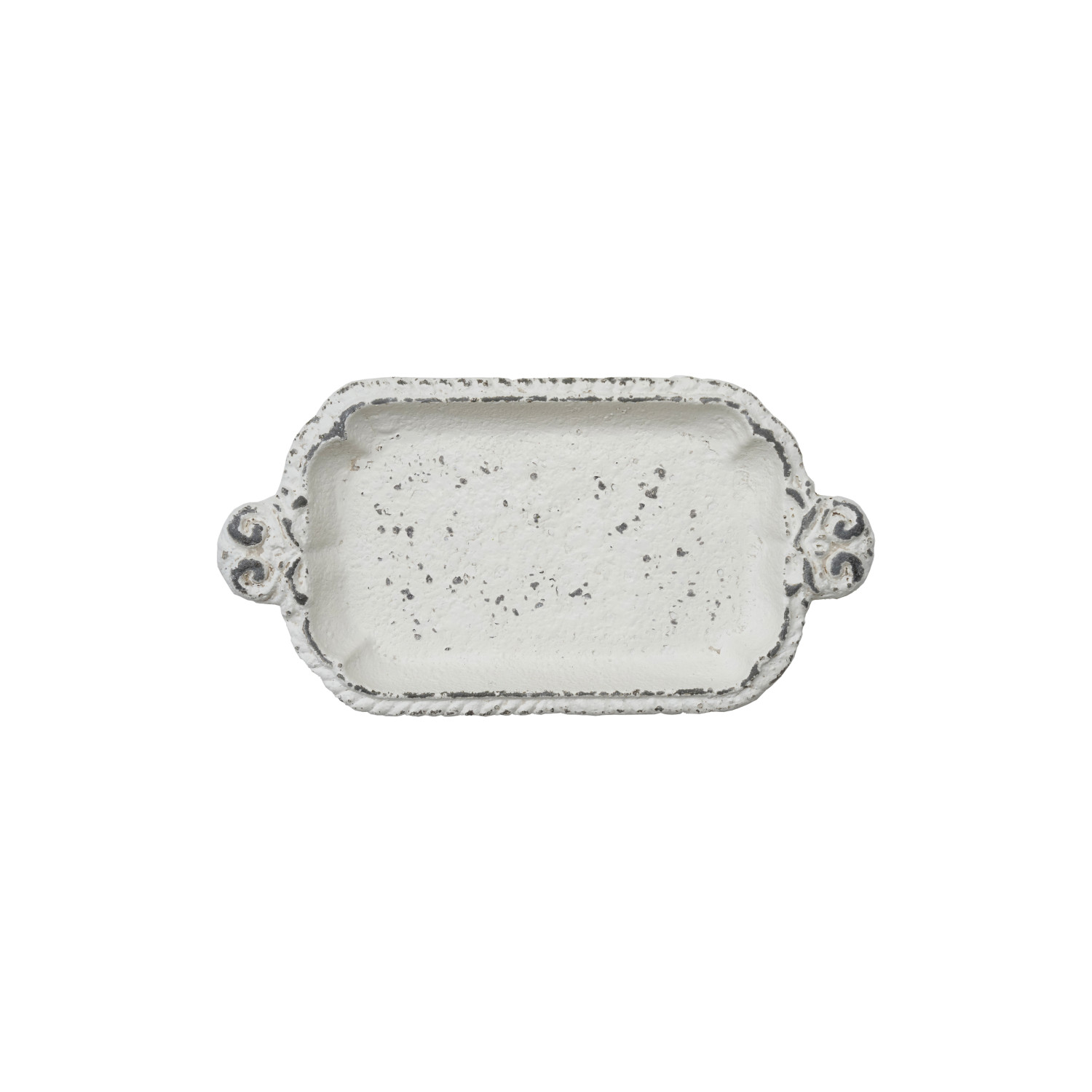 Catalog Name: 8"L x 4"W Decorative Painted Cast Iron Tray w/ Embossed Edge & Handles, Distressed Finish, White