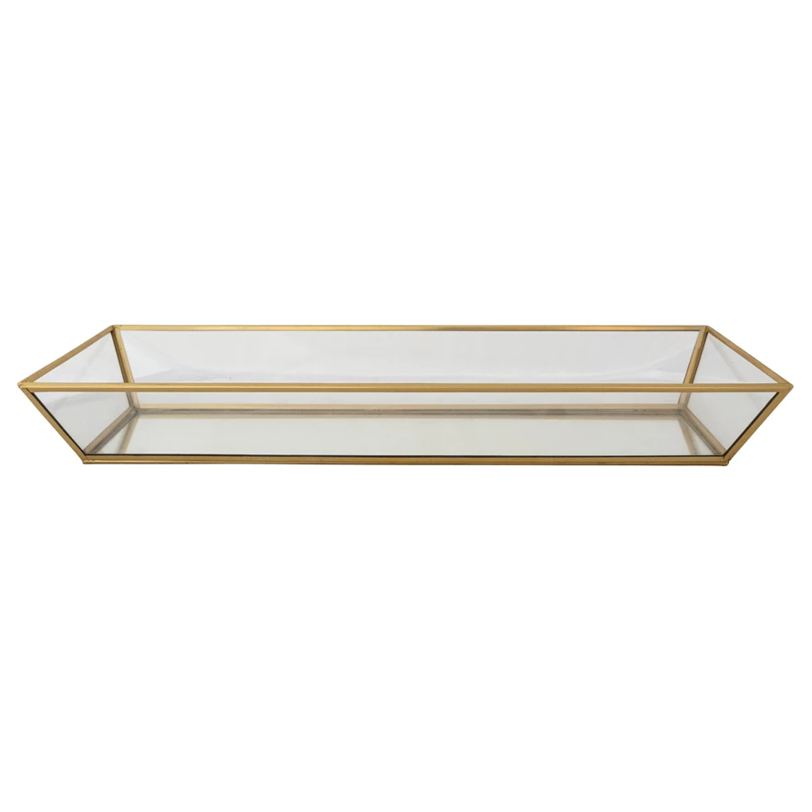 Catalog Name: 17-1/2"L x 6"W x 2-1/4"H Decorative Handmade Mirrored Glass & Brass Tray, Gold Finish