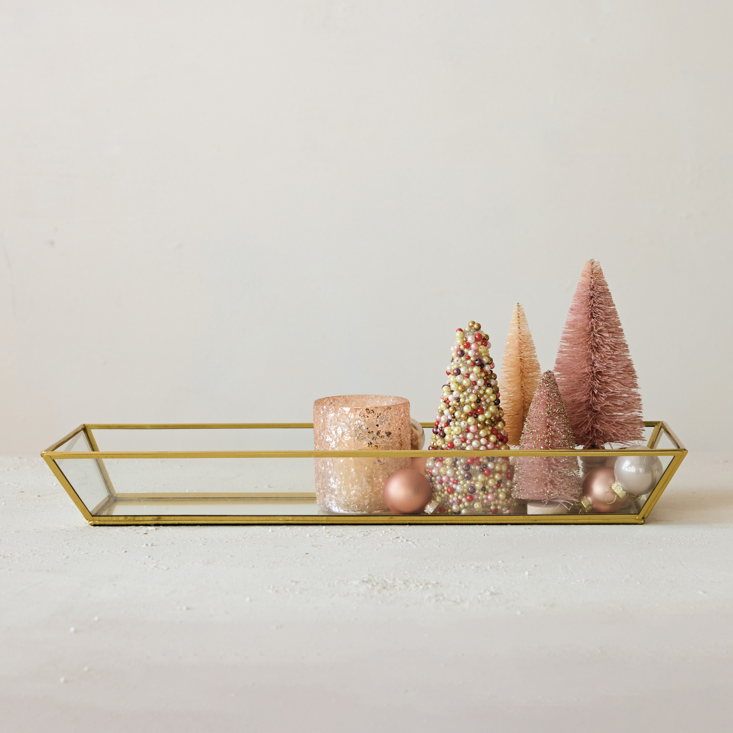 Decorative Handmade Mirrored Glass & Brass Tray, Gold Finish