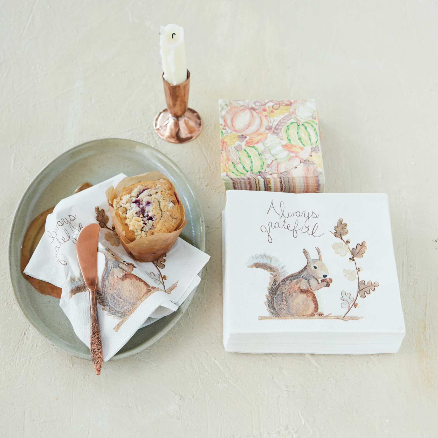 Paper Napkins with Squirrel "Always Grateful" (Contains 50 Folded Pieces) ©