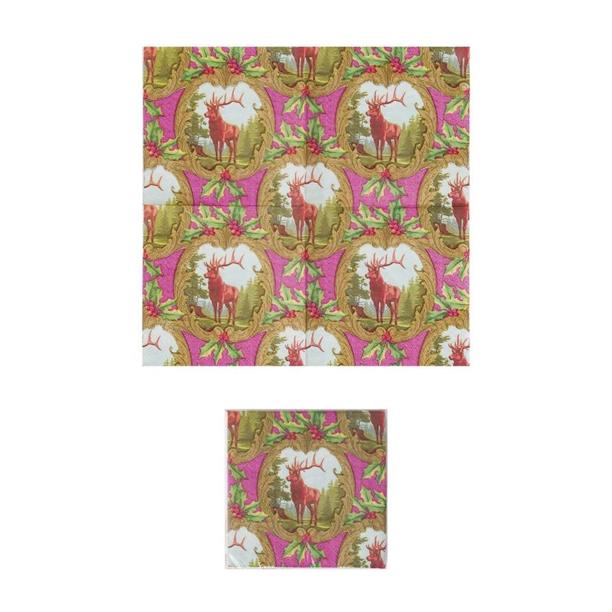 Paper Cocktail Napkins w/ Deer & Holly, Multi Color (Contains 50 Folded Pieces) ©