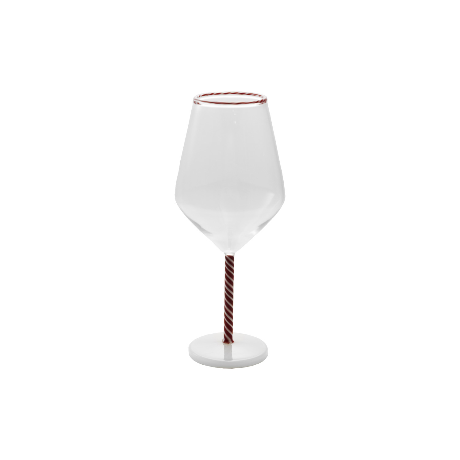 12 oz. Stemmed Wine Glass with Striped Rim & Stem, Red & White