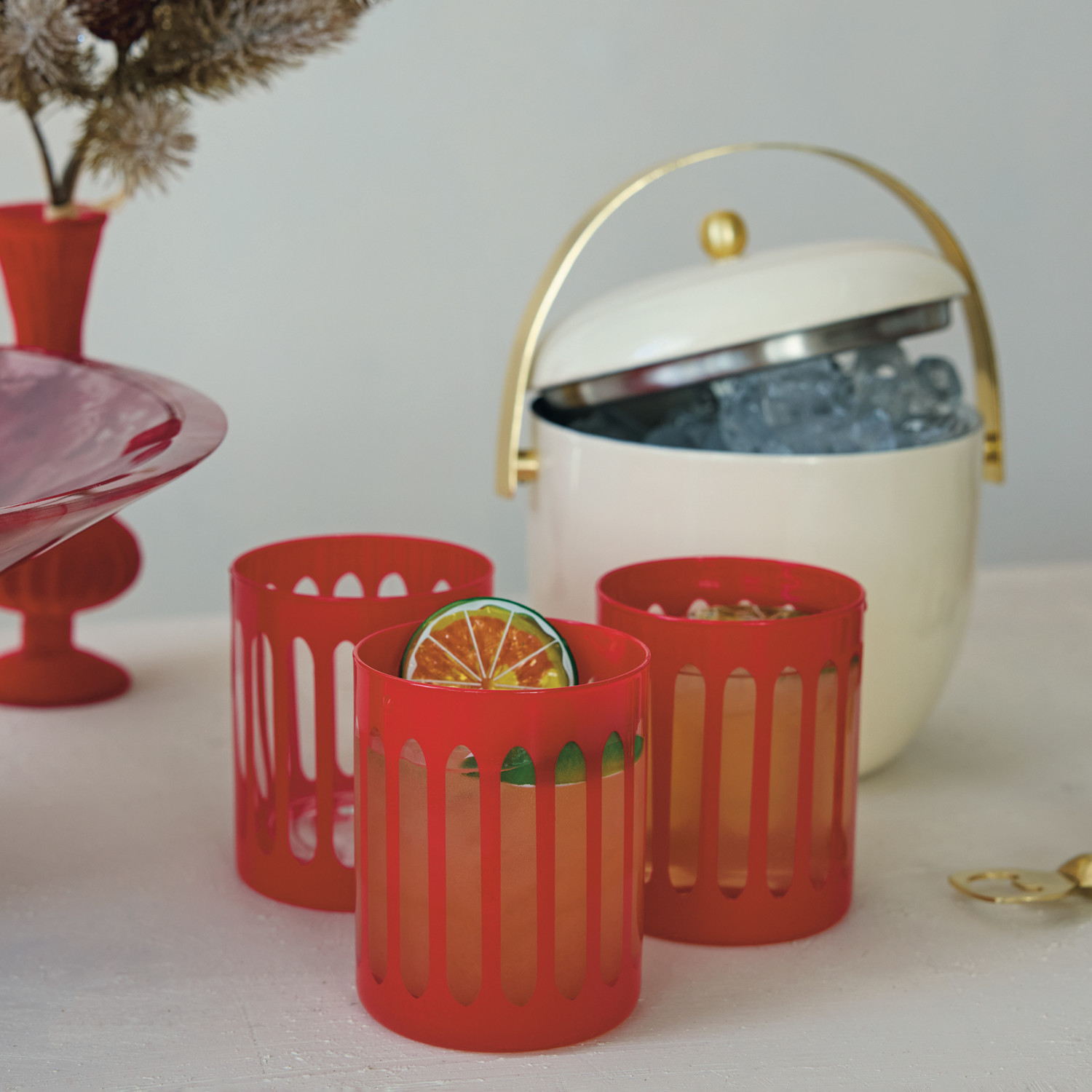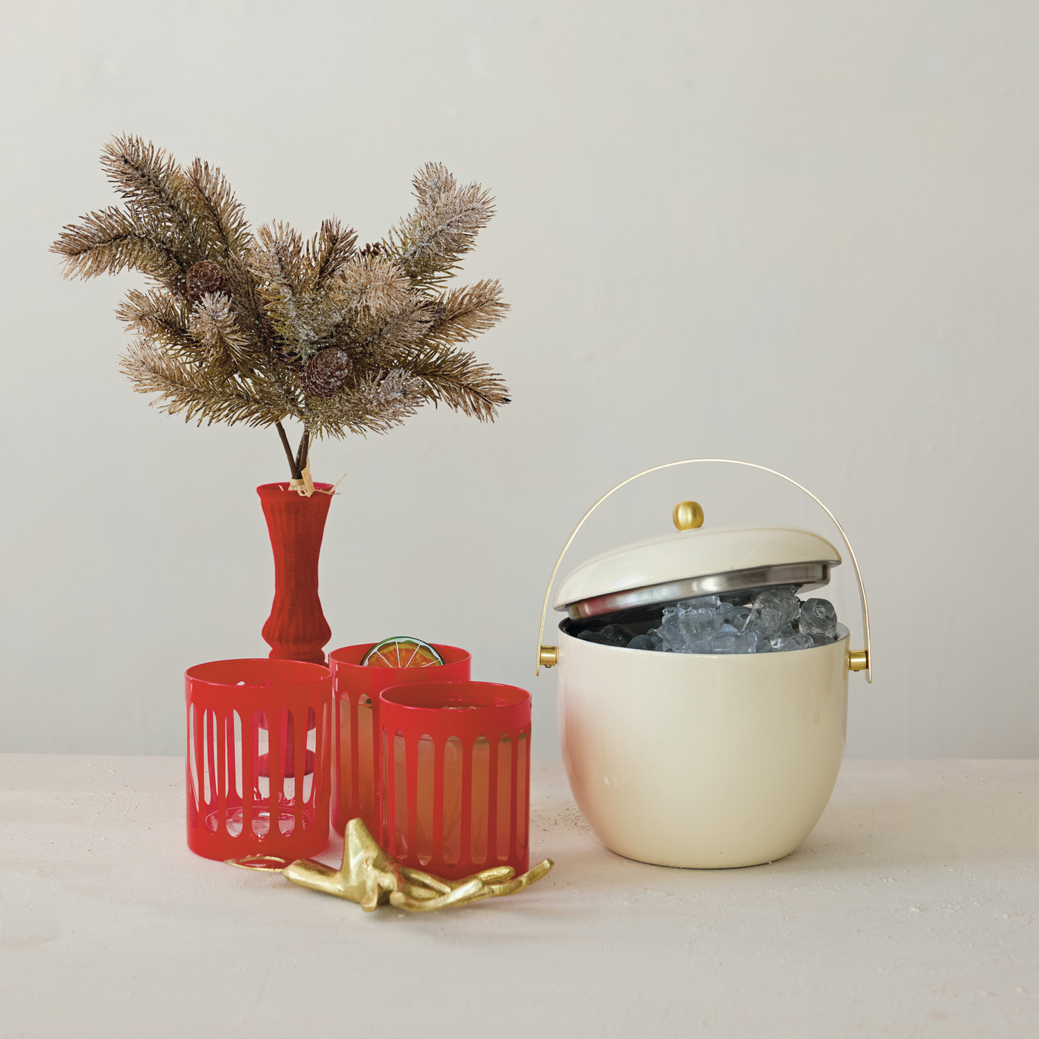 1-1/2 Quart Enameled Stainless Steel Ice Bucket with Gold Finish Knob & Handle