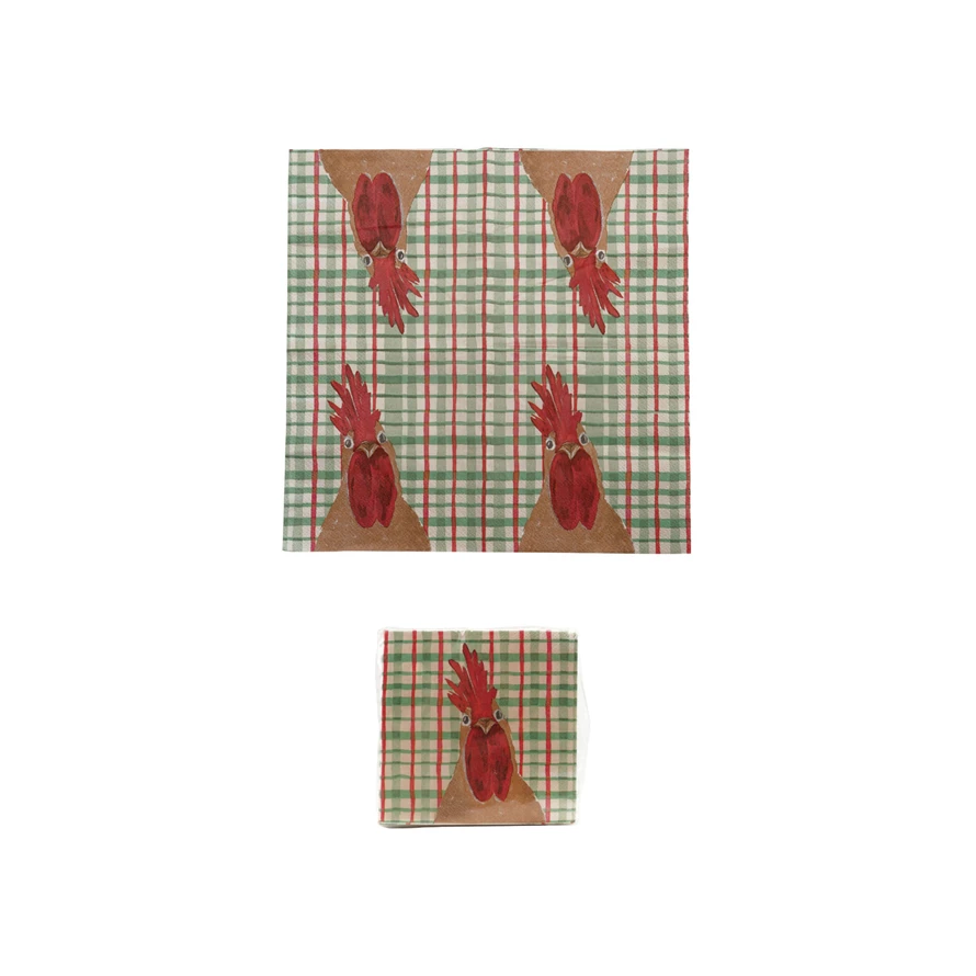 Paper Cocktail Napkins with Holiday Pattern & Chicken (Contains 50 Folded Pieces) ©