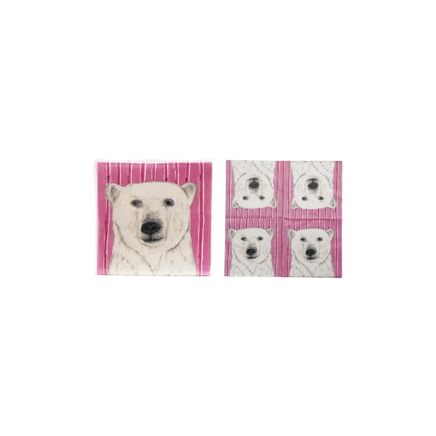 Paper Napkins with Holiday Pattern & Polar Bear (Contains 50 Folded Pieces) ©
