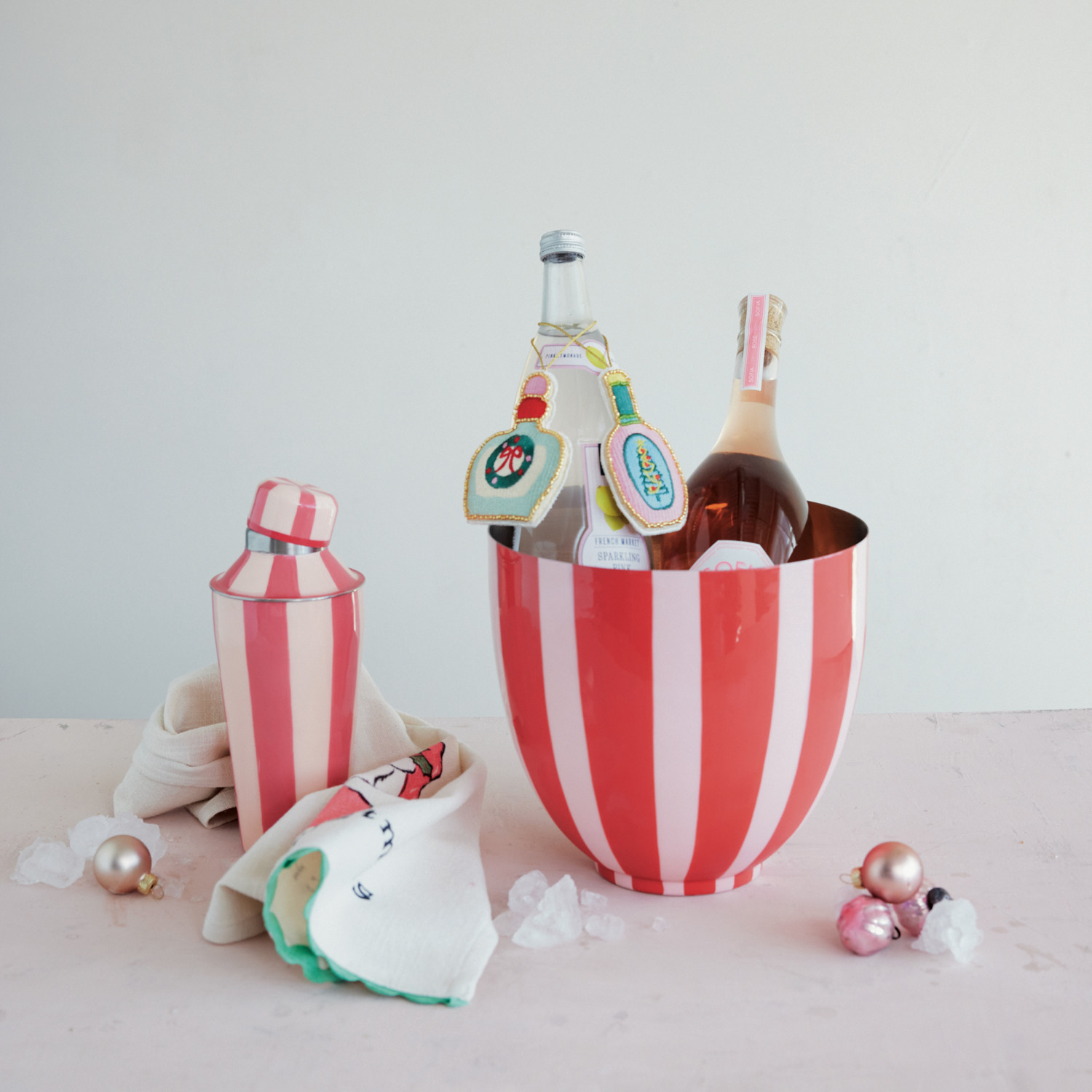 20 oz. Enameled Stainless Steel Striped Cocktail Shaker, Red & Pink