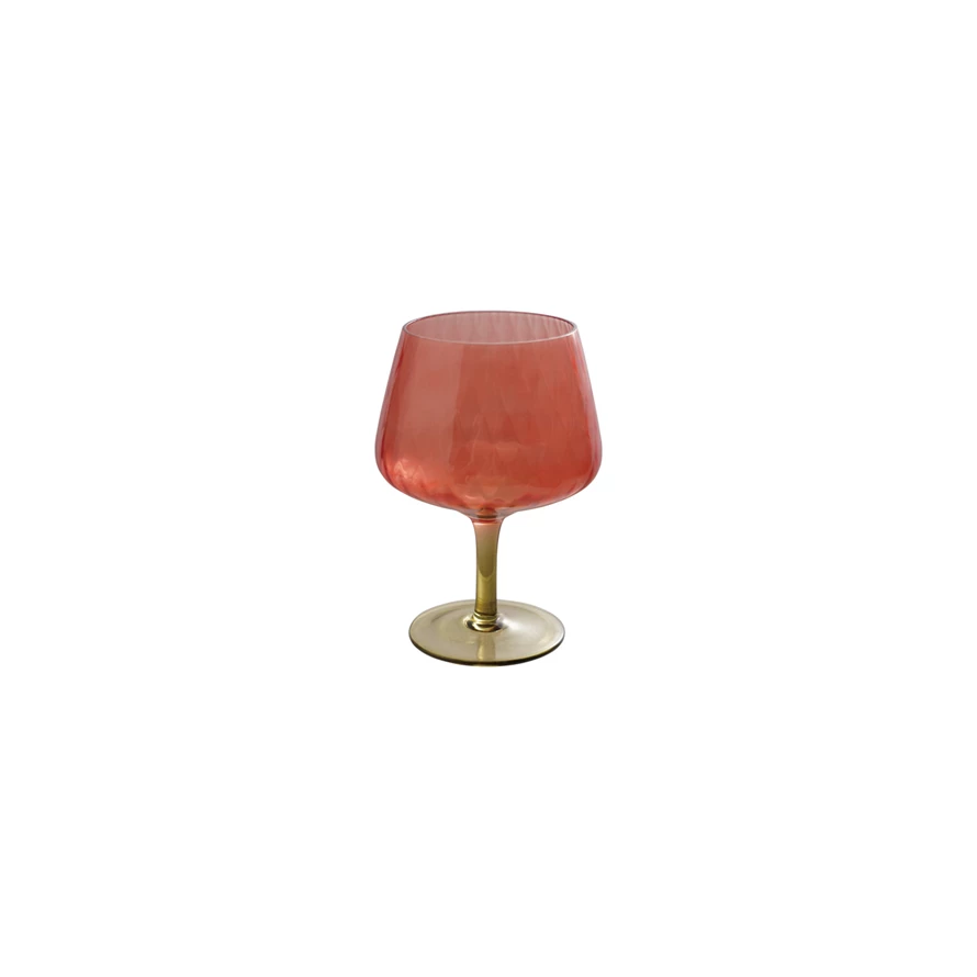 Catalog Name: 4" Round x 6"H 14 oz. Ribbed Stemmed Wine Glass, Red & Olive Green
