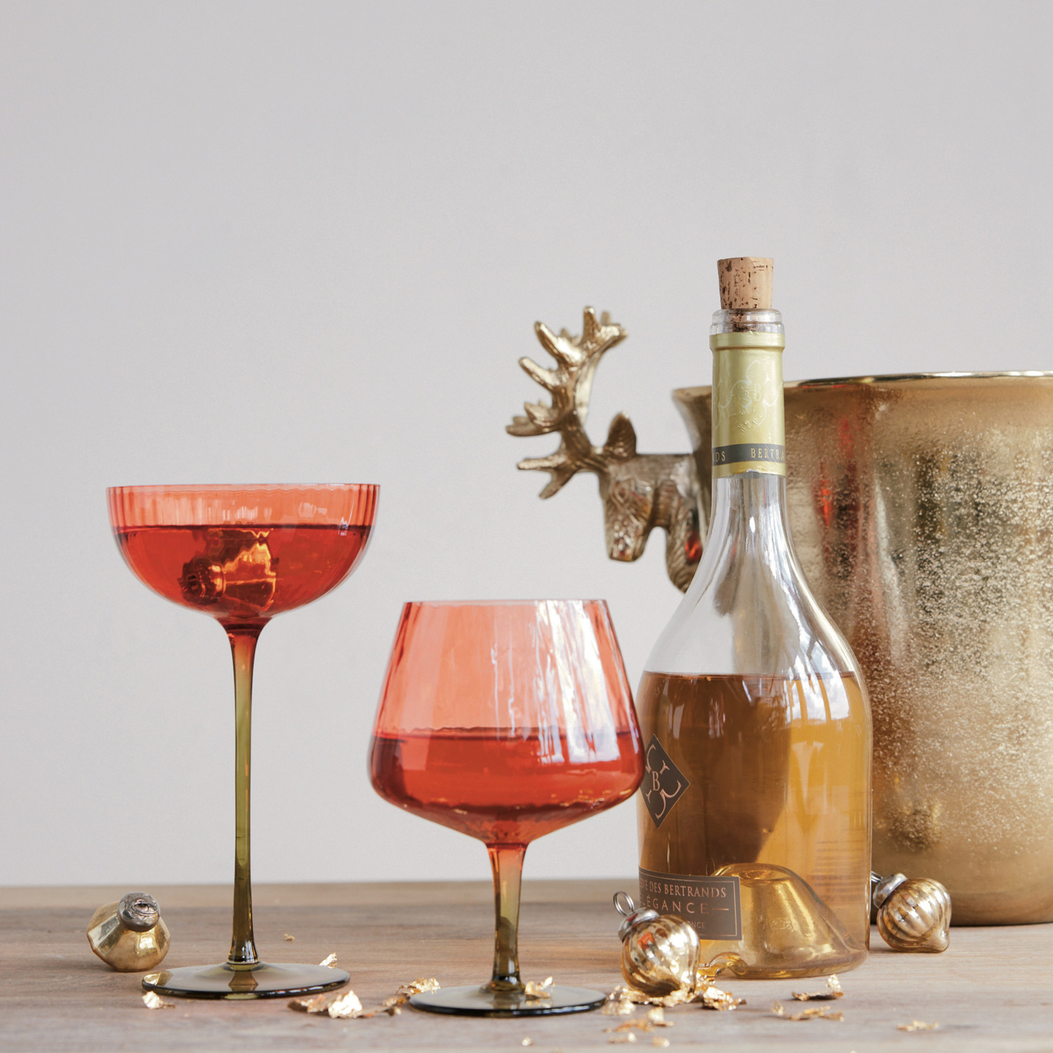 14 oz. Ribbed Stemmed Wine Glass, Red & Olive Green
