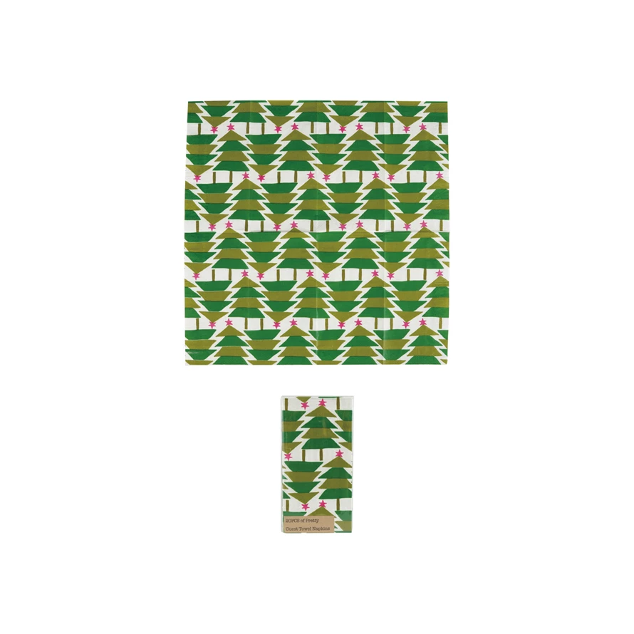 Paper Napkins with Tree Pattern, Green, White & Fuchsia Color (Contains 20 Folded Pieces) ©