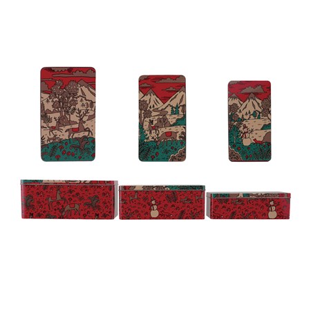 Catalog Name: 4" Square Resin Coasters w/ Holiday Words & Animals in Wood Box, Multi Color, Set of 5 ©