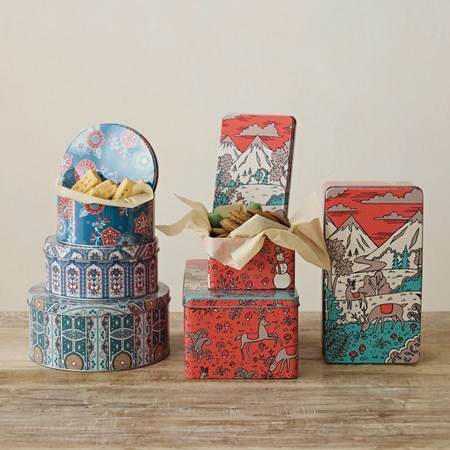 Resin Coasters with Holiday Words & Animals in Wood Box, Set of 5 ©