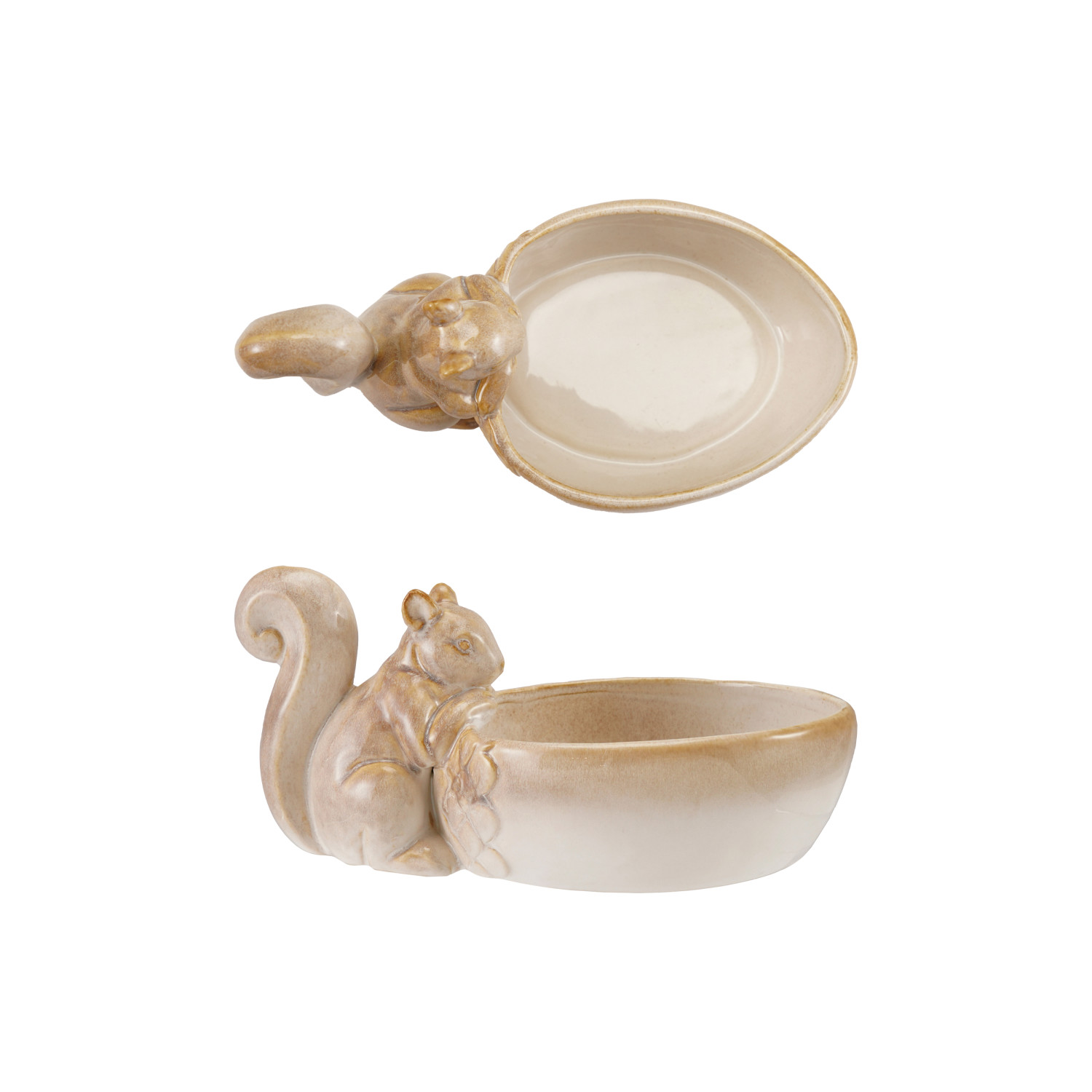 Catalog Name: 10-1/4"L x 5-1/2"W x 5"H Stoneware Bowl w/ Squirrel, Reactive Glaze, Cream Color (Each One Will Vary)