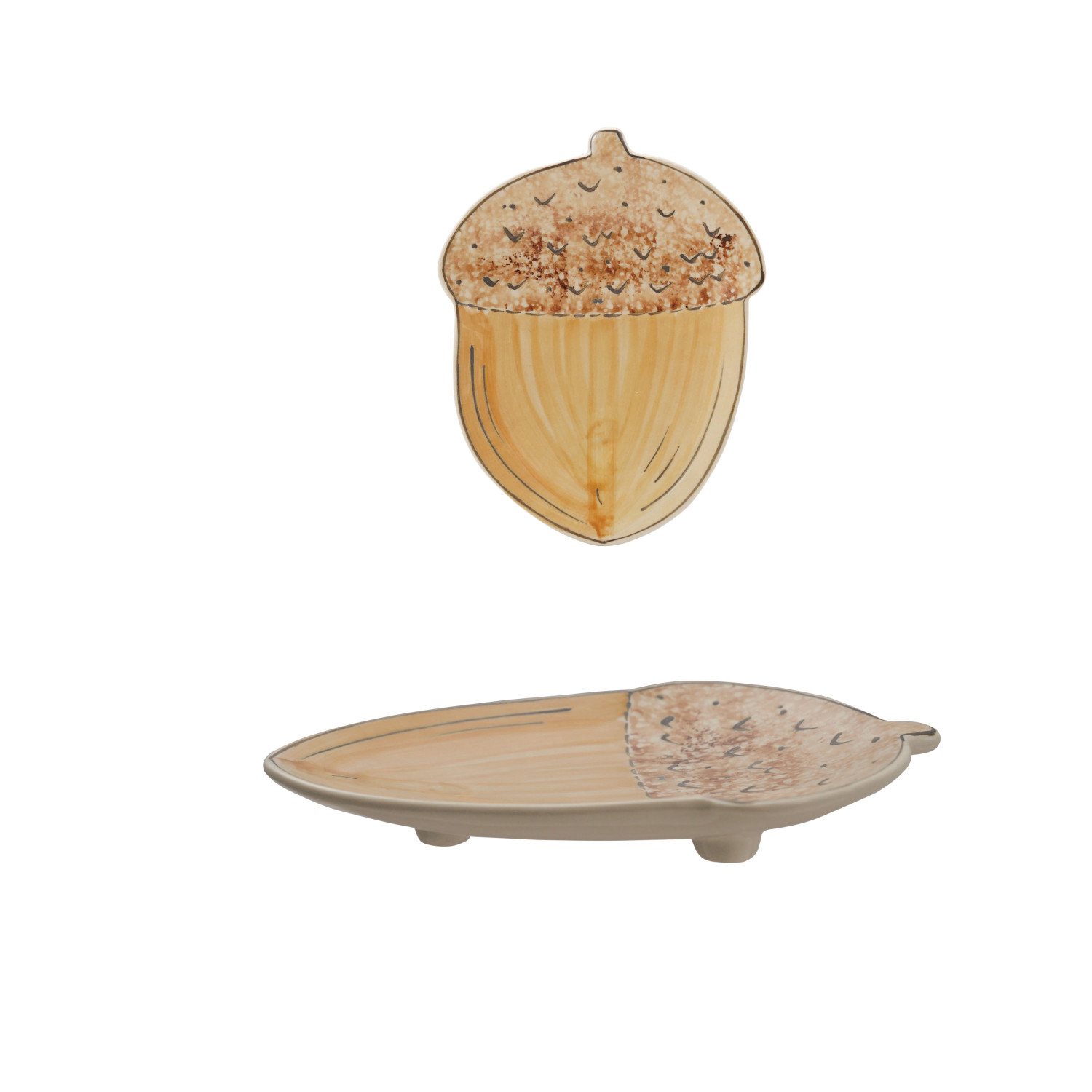 Stoneware Footed Acorn Shaped Plate, Brown
