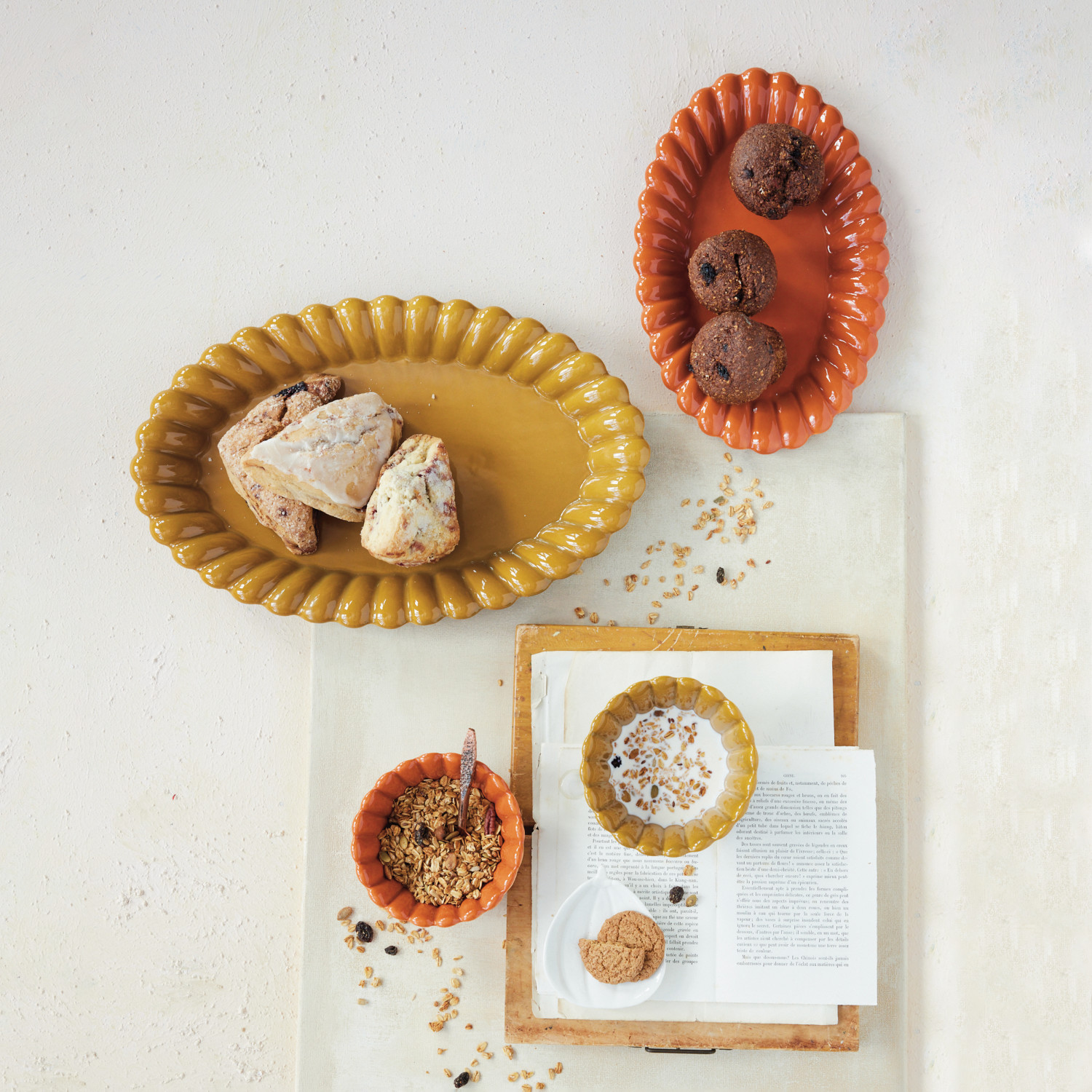Stoneware Pleated Scalloped Bowl, 2 Colors