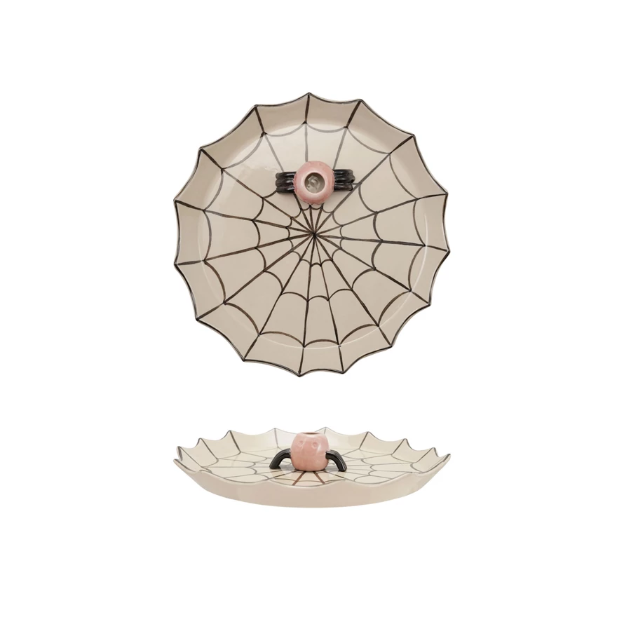 Stoneware Spider Web Shaped Platter with Toothpick Holder, Set of 2 ©