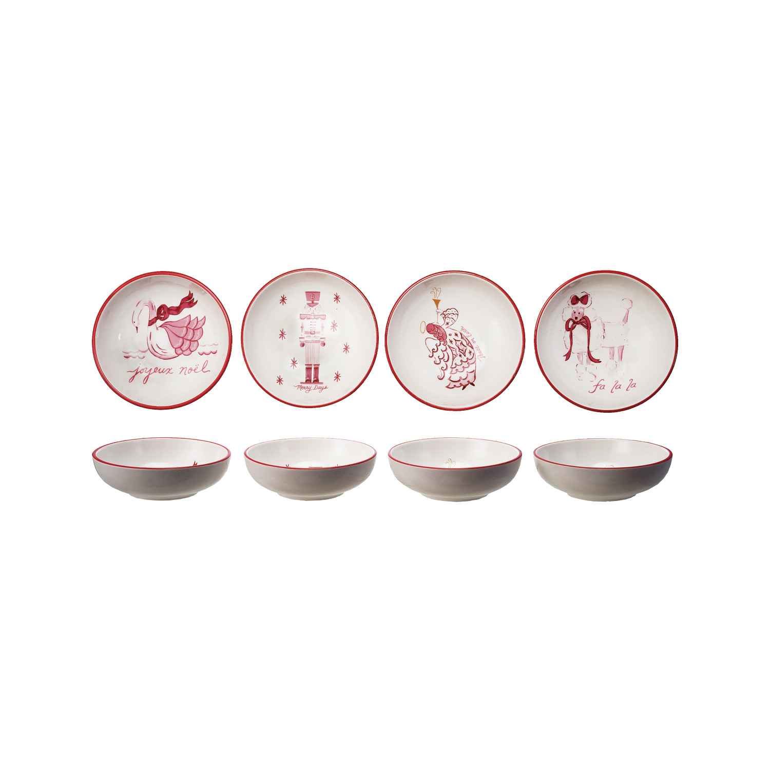 Catalog Name: 5" Round x 1-1/2"H Stoneware Bowl w/ Holiday Image, Saying & Red Rim, Pink, Red & White, 4 Styles ©