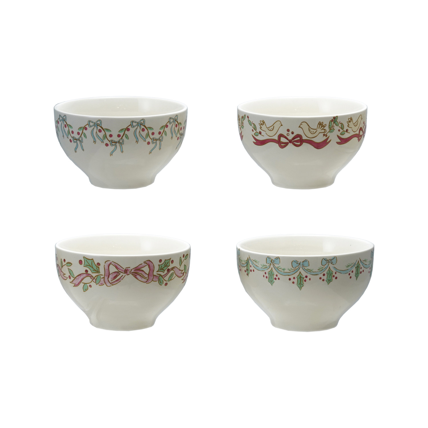 Catalog Name: 4-1/2" Round x 2-3/4"H Stoneware Bowl w/ Bows, Multi Color, 4 Styles ©