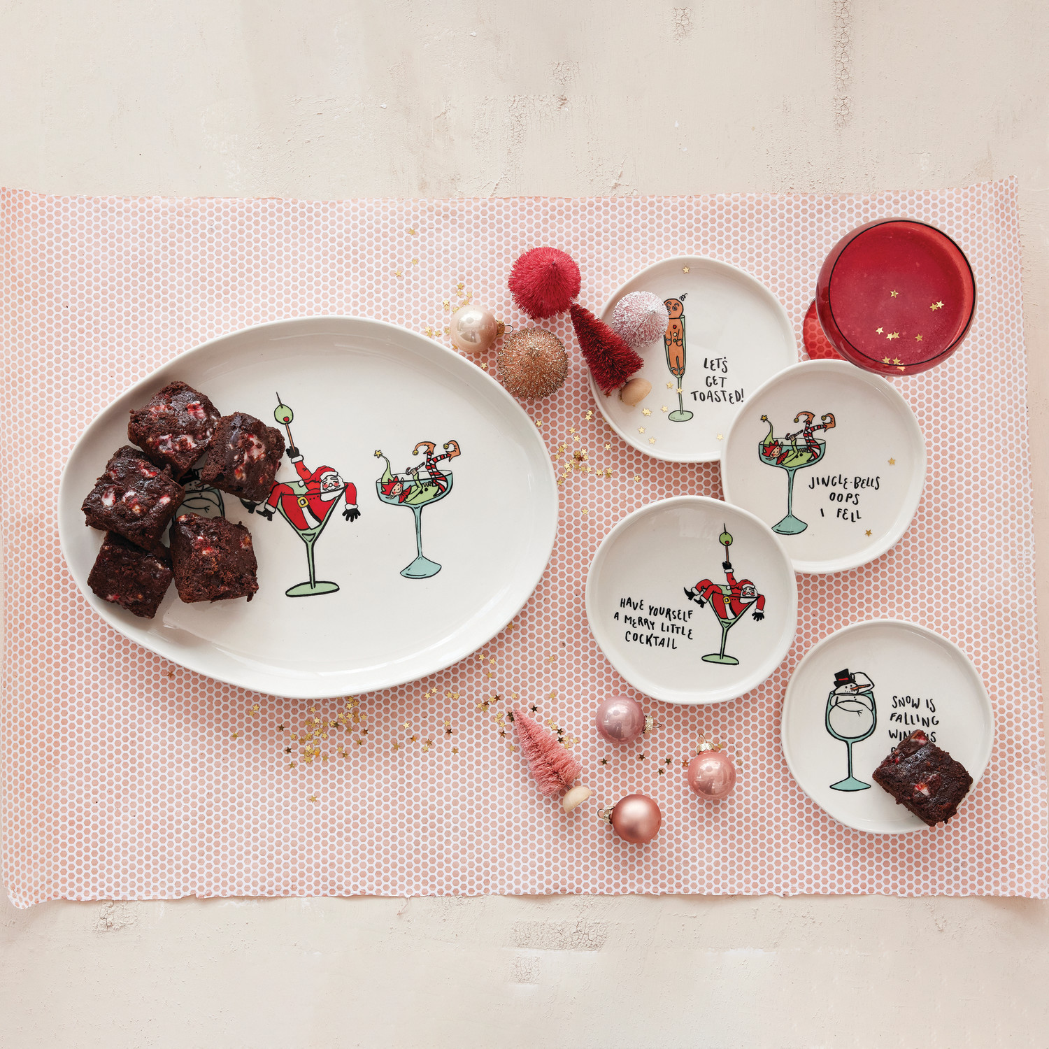 Stoneware Plate with Holiday Icon & Tipsy Saying, 4 Styles