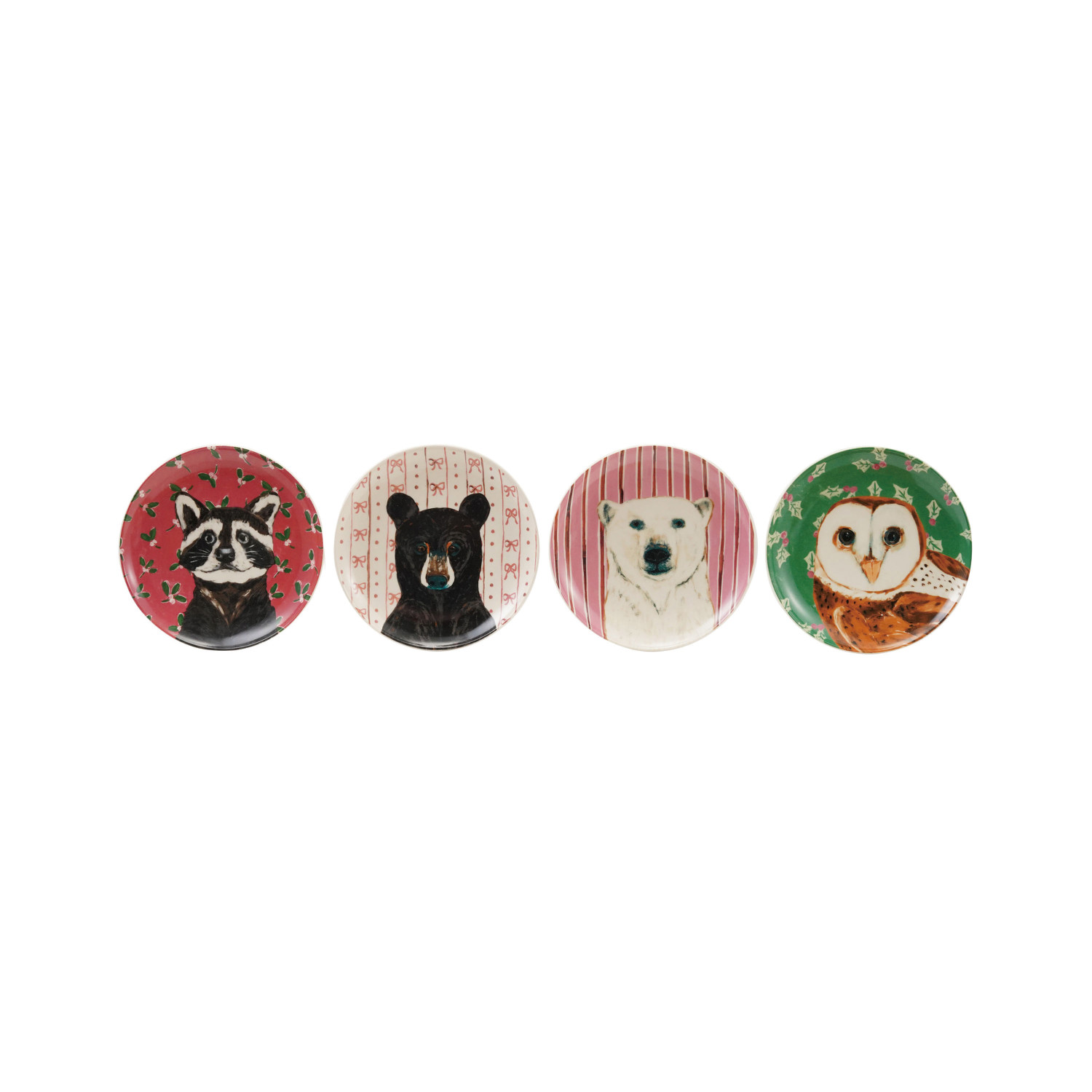 Catalog Name: 6" Round Stoneware Plate w/ Holiday Pattern & Animal, Multi Color, 4 Styles ©