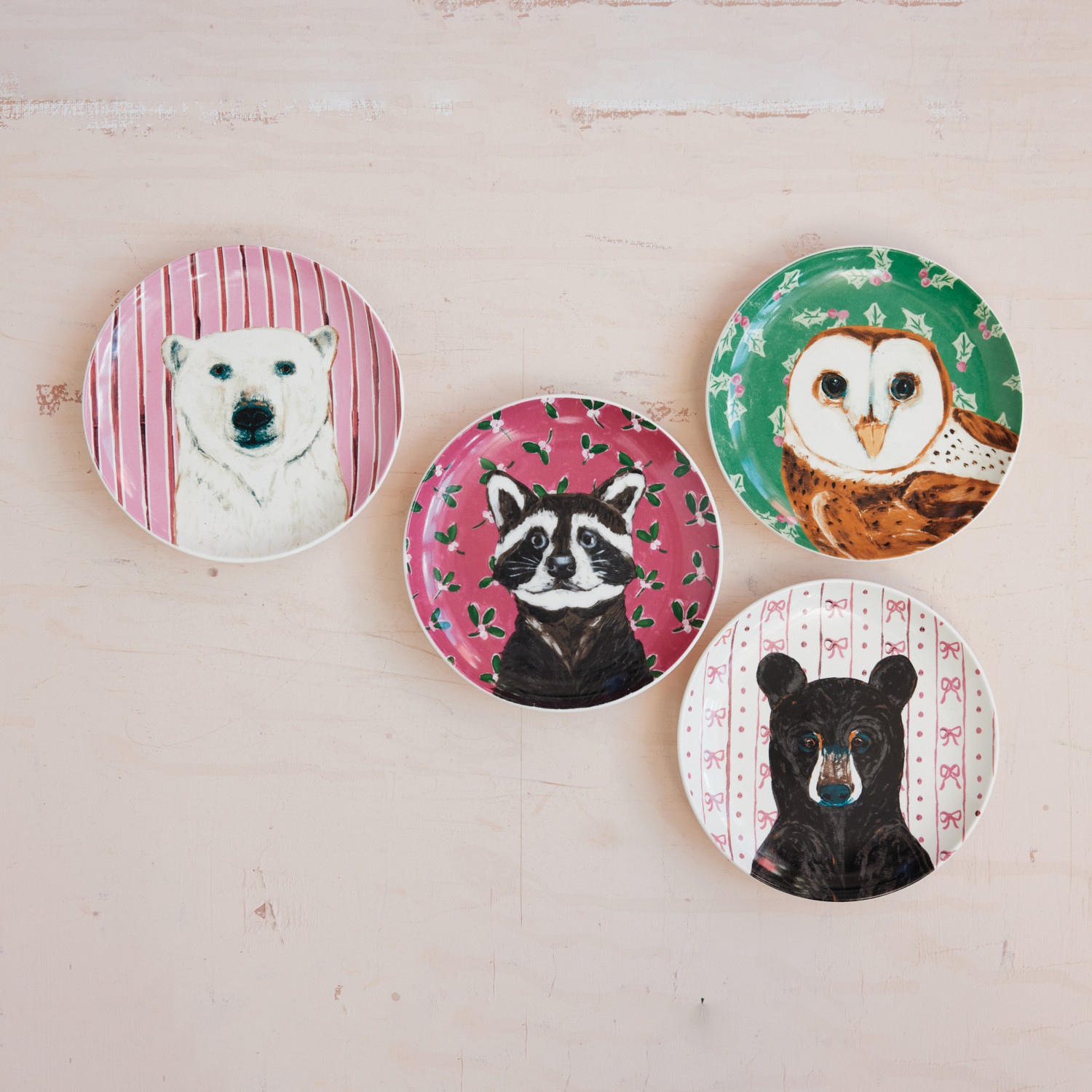 Stoneware Plate with Holiday Pattern & Animal, 4 Styles ©
