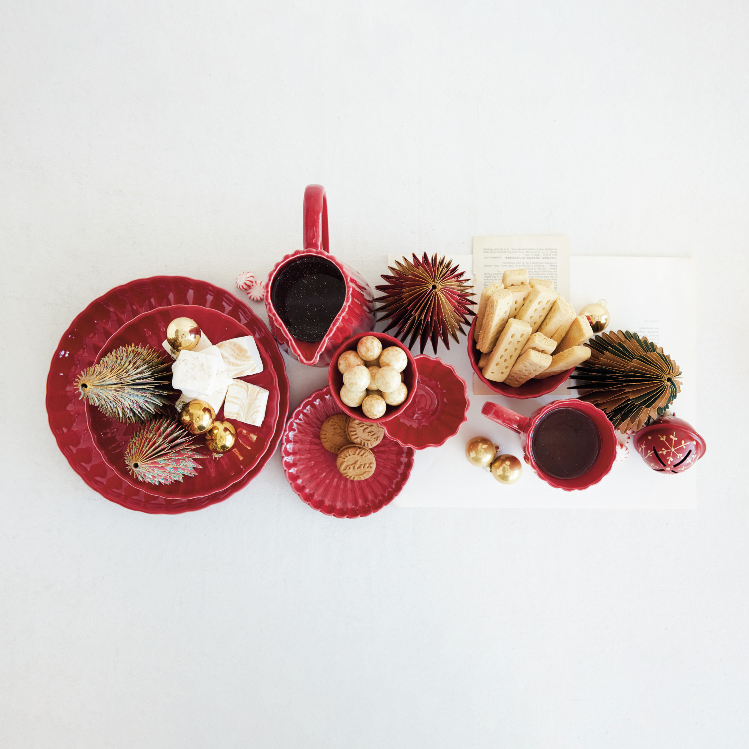Stoneware Fluted Plate, Red (Each One Will Vary)