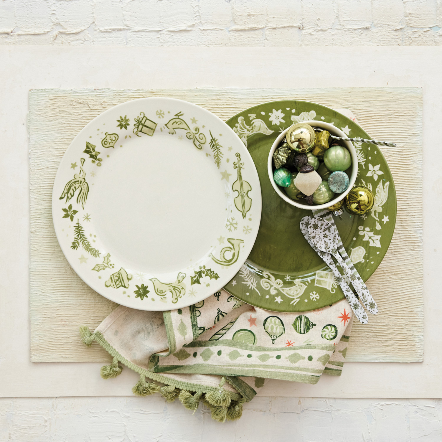 Catalog Name: 10" Round Stoneware Plate w/ Holiday Design, Green & Cream Color, 2 Styles ©