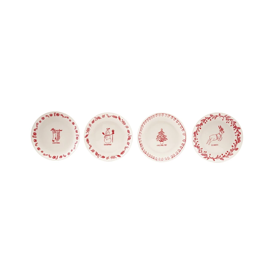 Catalog Name: 6" Round Stoneware Plate w/ Holiday Design, Icon & Word, White & Red, 4 Styles