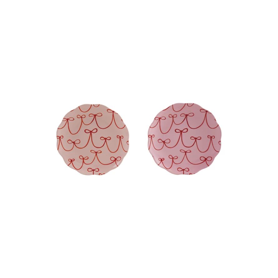 Stoneware Scalloped Plate with Bow Pattern, 2 Colors ©