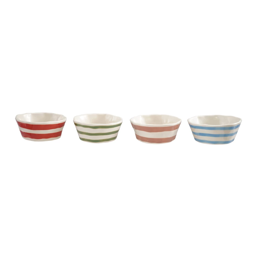 Hand-Painted Stoneware Striped Bowl, 4 Styles