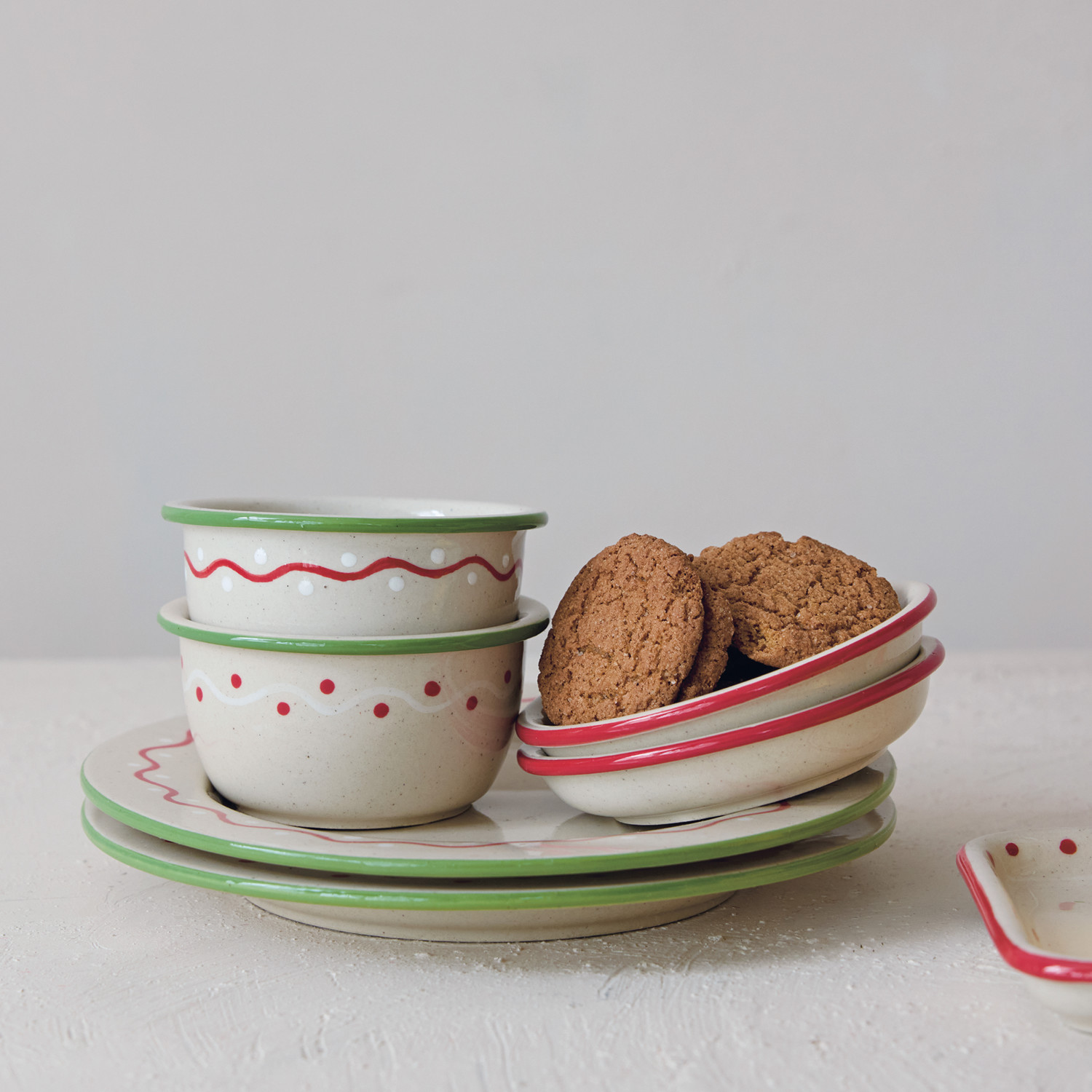 Hand-Painted Stoneware Bowl with Design & Colored Edge, 2 Styles