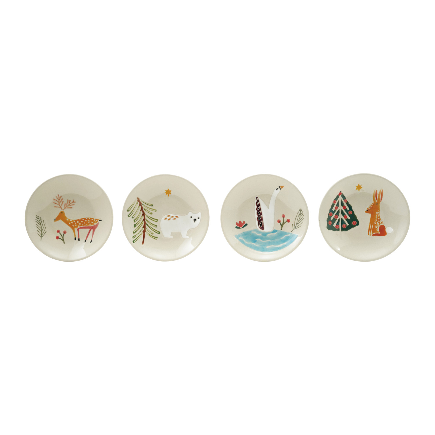 Catalog Name: 5" Round Hand-Painted Stoneware Plate w/ Wax Relief Animal & Seasonal Botanicals, Multi Color, 4 Styles ©