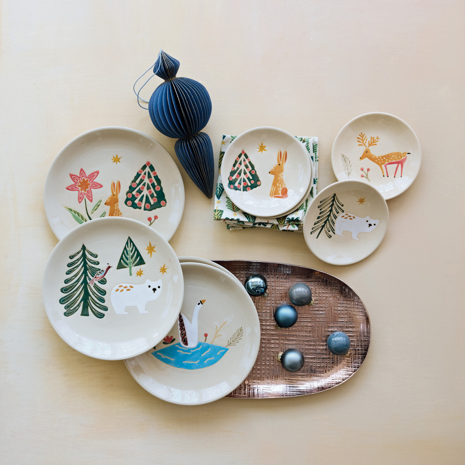 Hand-Painted Stoneware Plate with Wax Relief Animal & Seasonal Botanicals, 4 Styles ©