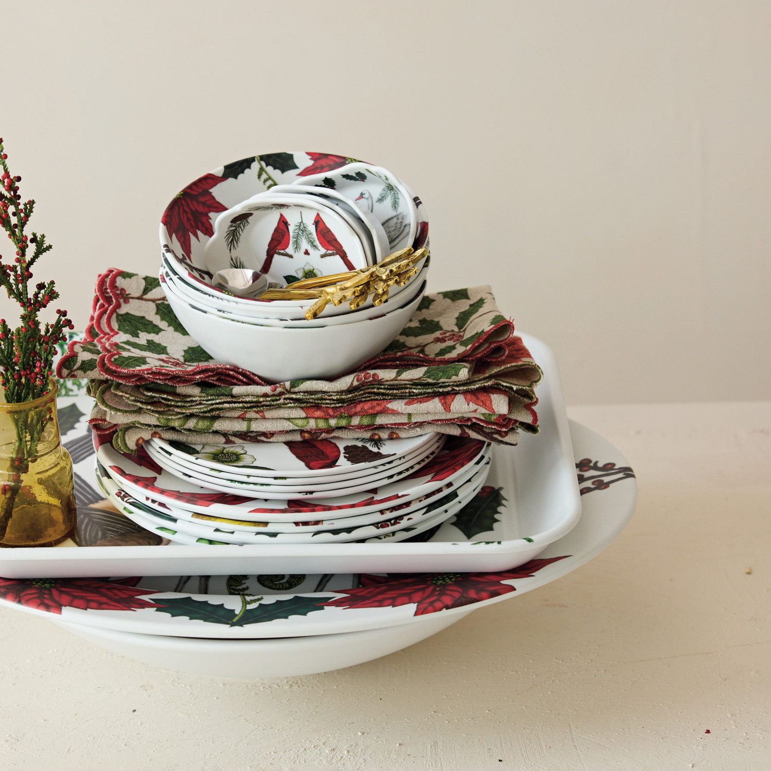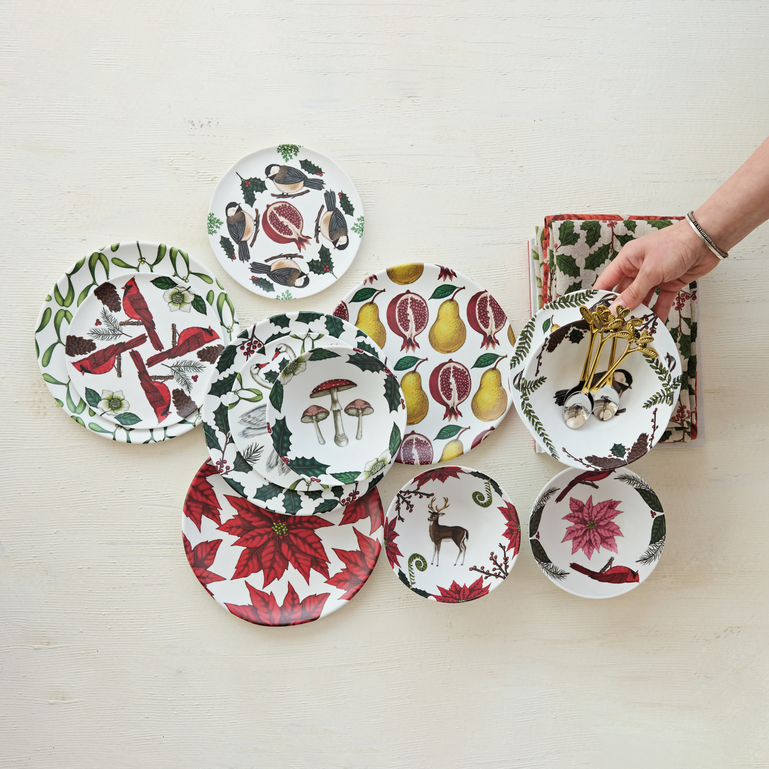 Melamine Plate with Seasonal Botanical Pattern, Matte Finish, 4 Styles ©