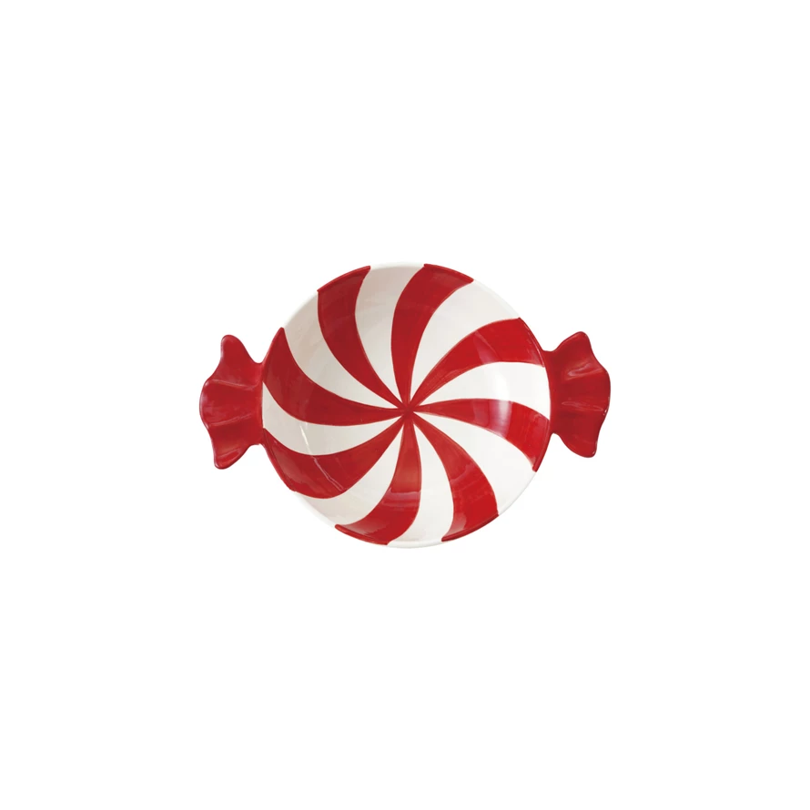 Hand-Painted Ceramic Candy Shaped Bowl, Red & White